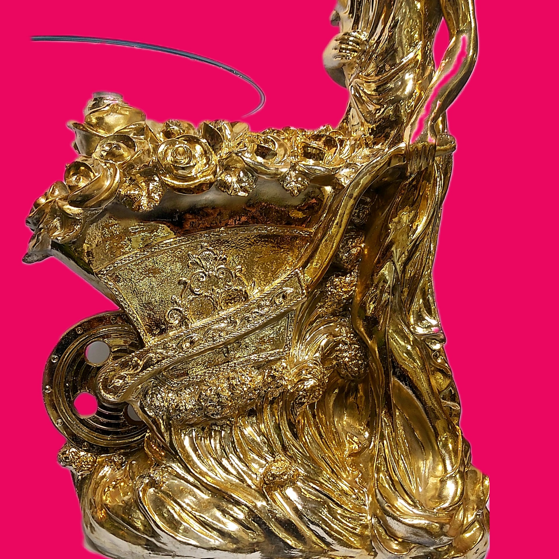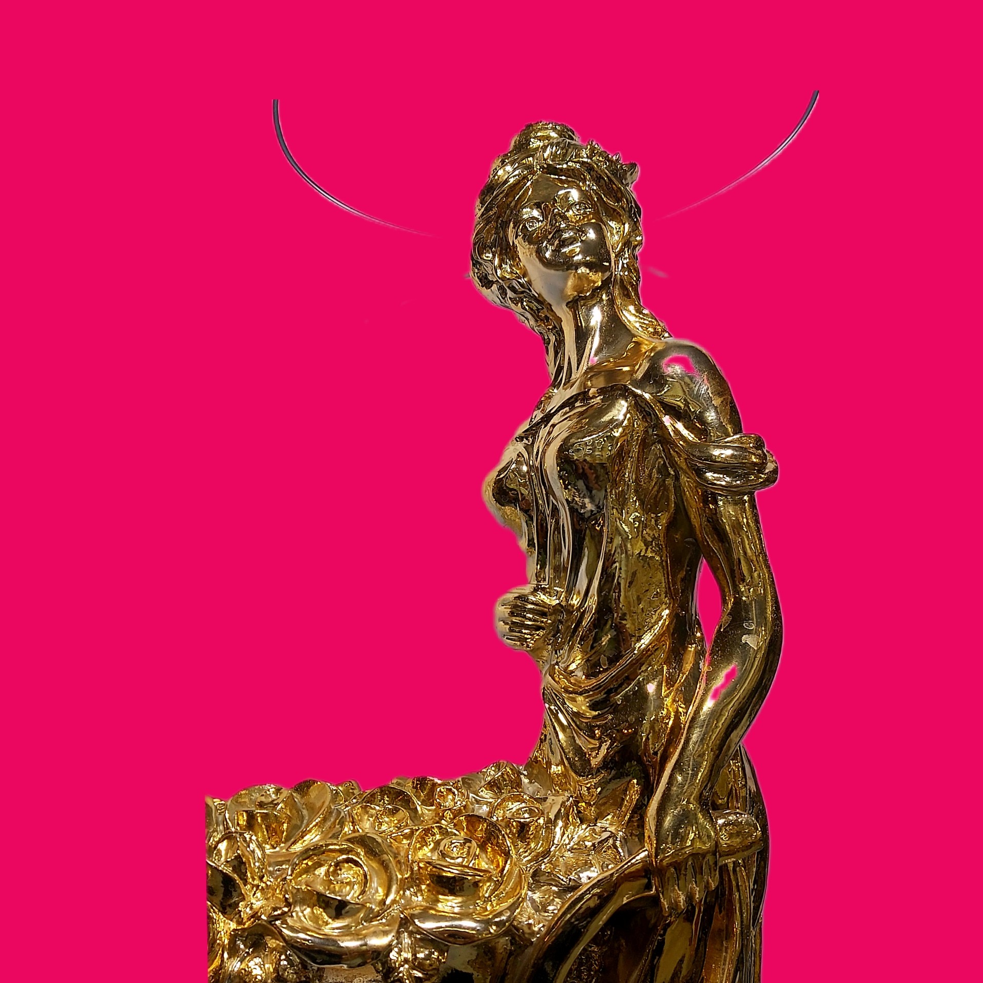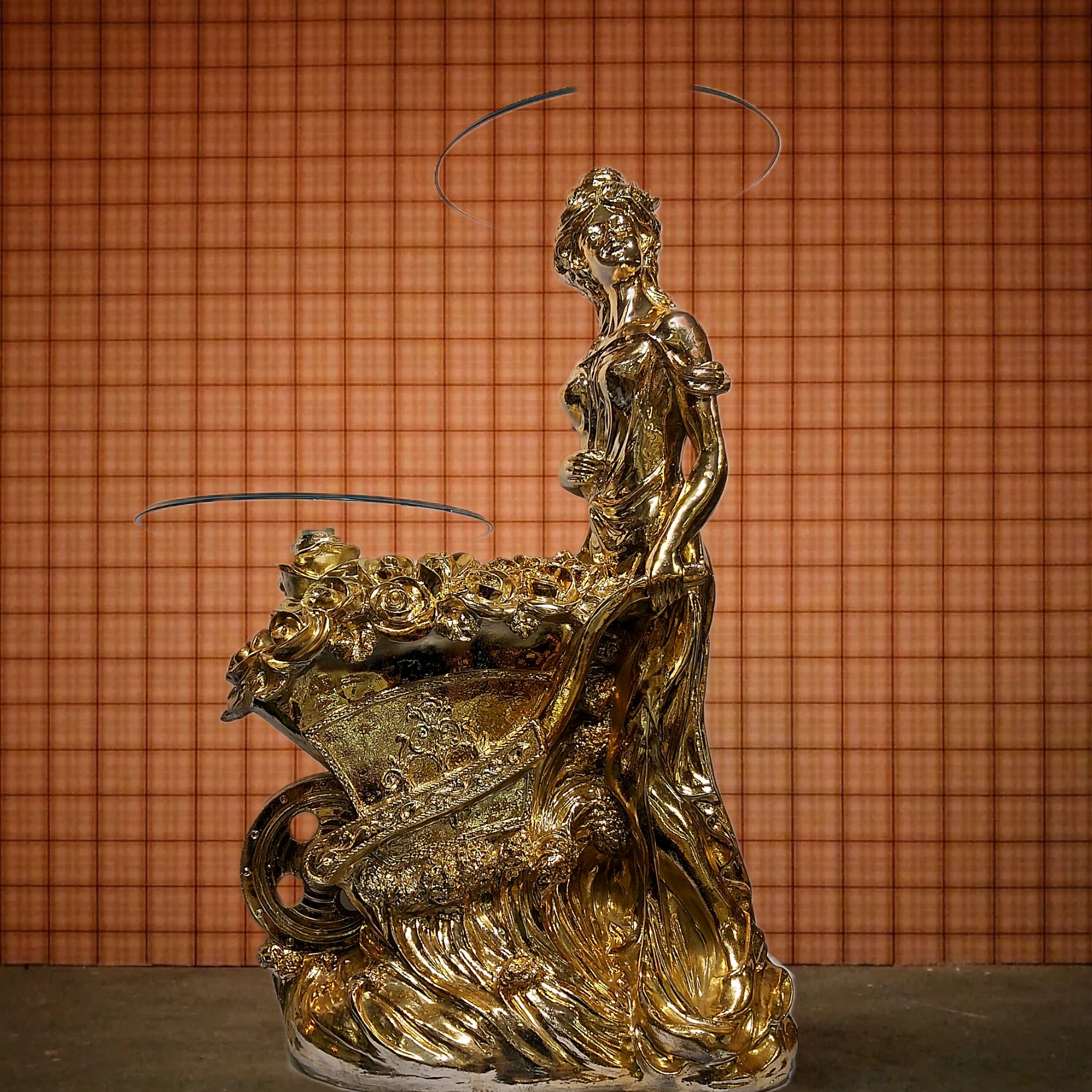 میز تلفن و دکوری دختر گلفروش دو شیشه آبکاری طلا عالیجناب مبلمونسرا مدل 223384