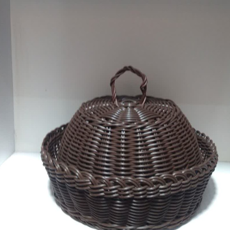 سبد نان دو تیکه در دا ر طرح بلوط به طور کل با نخ های پلاستیکی توسط دست بافته شده