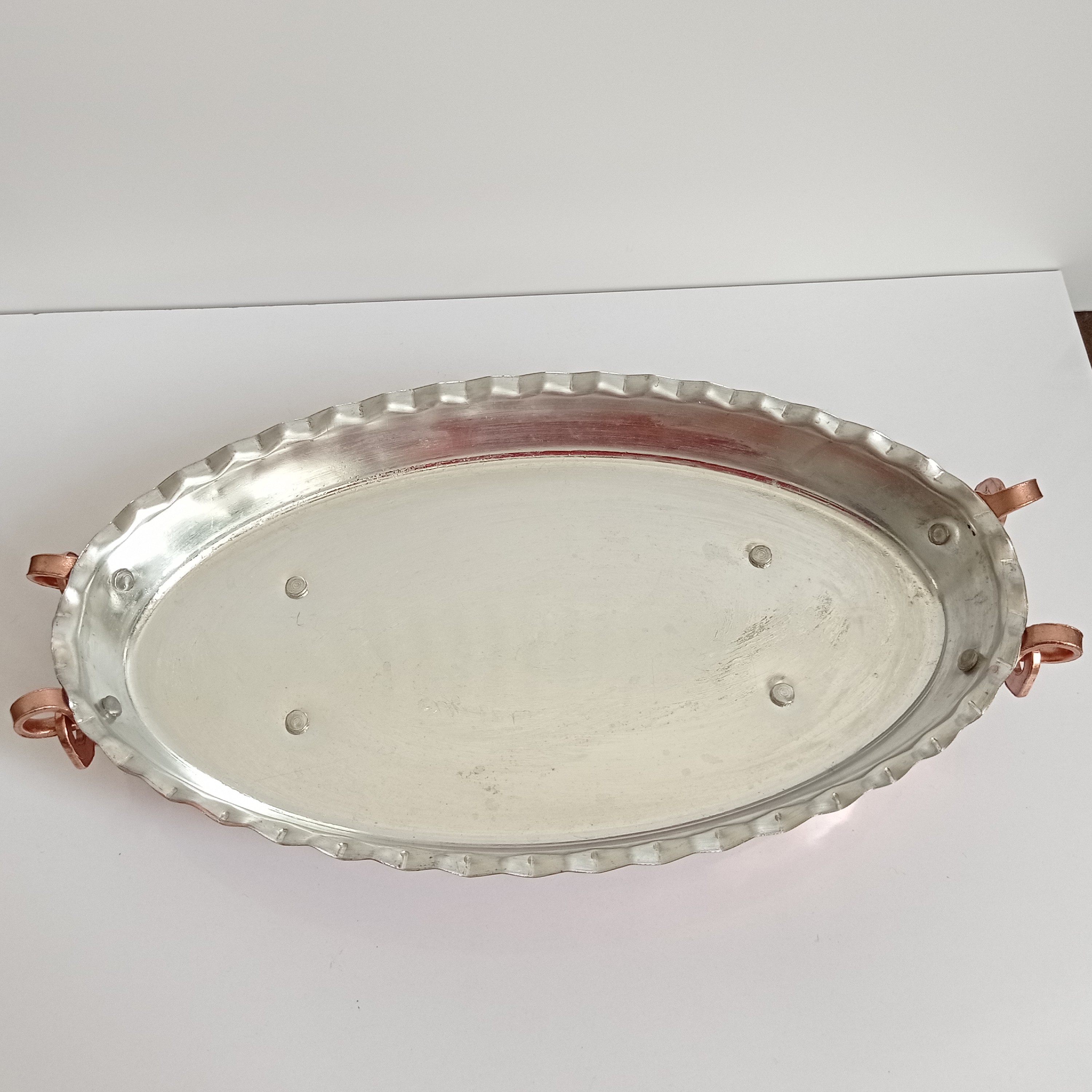 این ظرف برای سرو انواع خورش،مرغ، برنج، انواع پلو... استفاده می شود جنس دسته و پایه ظرف تمام از مس ساخته شده