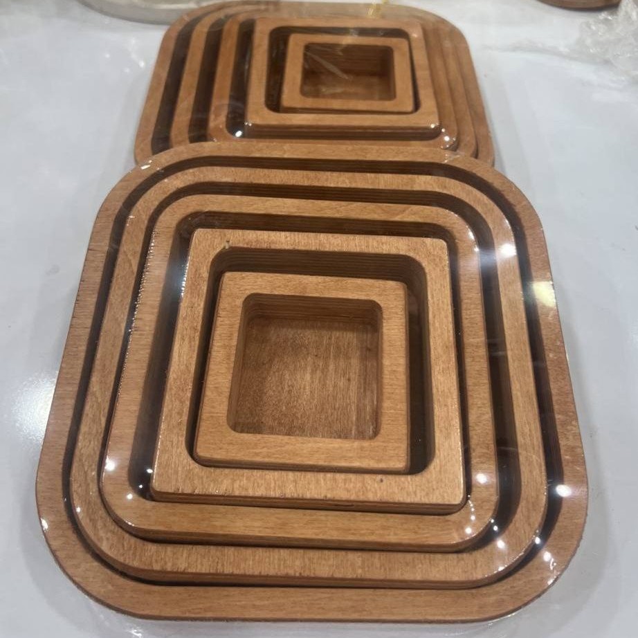 طرف سرو چوبی ۵تکه مناسب برای سرو انواع خوراکی و... قابل شستشو پک ۵عددی ۵سایز کاربردی شیک وخاص