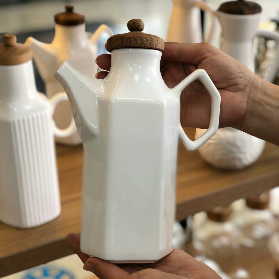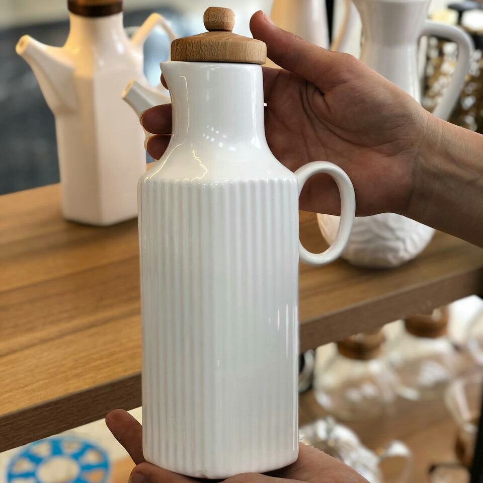 روغن ریز سرامیکی حجم 700 سی سی جنس بدنه سرامیک و جنس درب بامبو و واشر دار برای محکم شدن درب در دو طرح موجوده