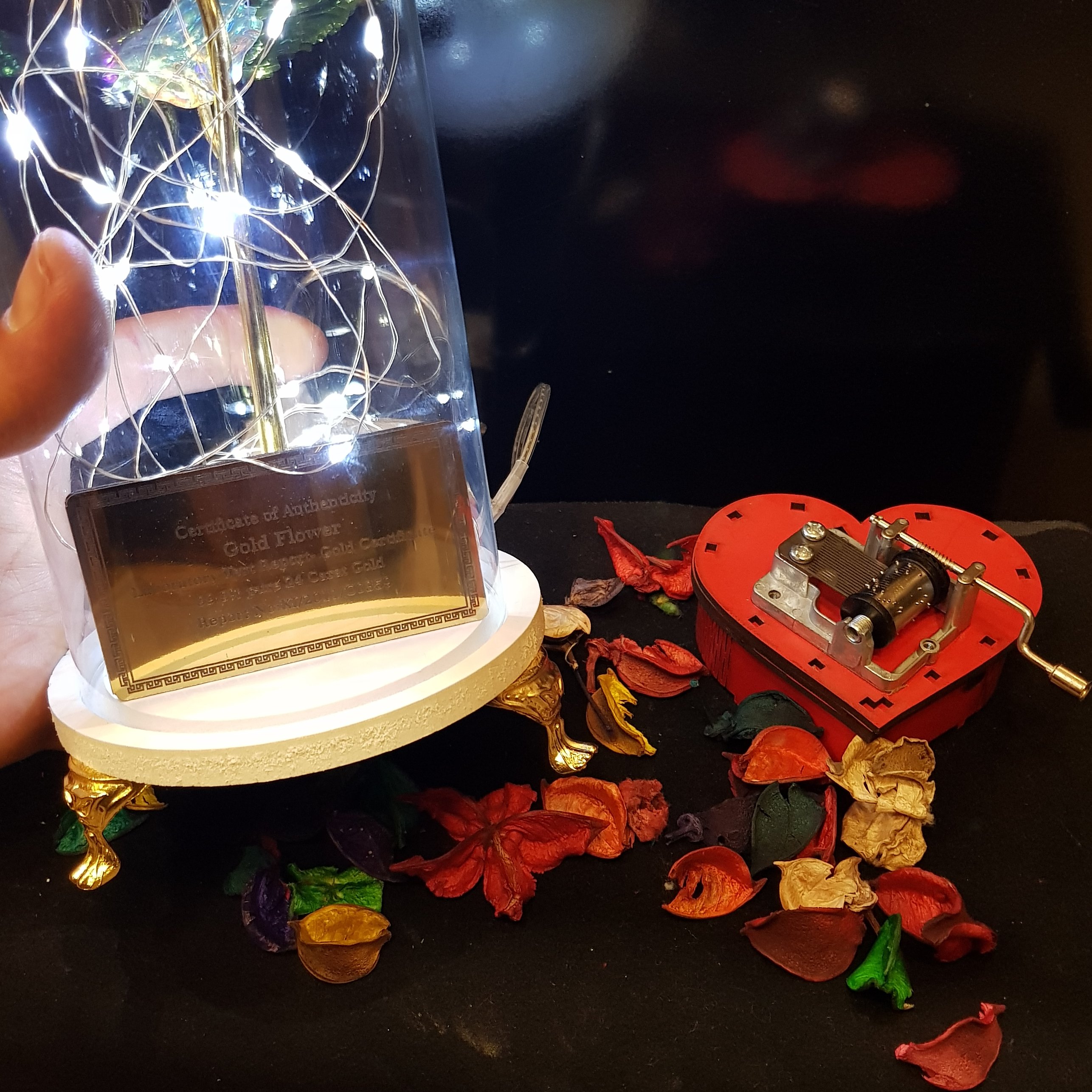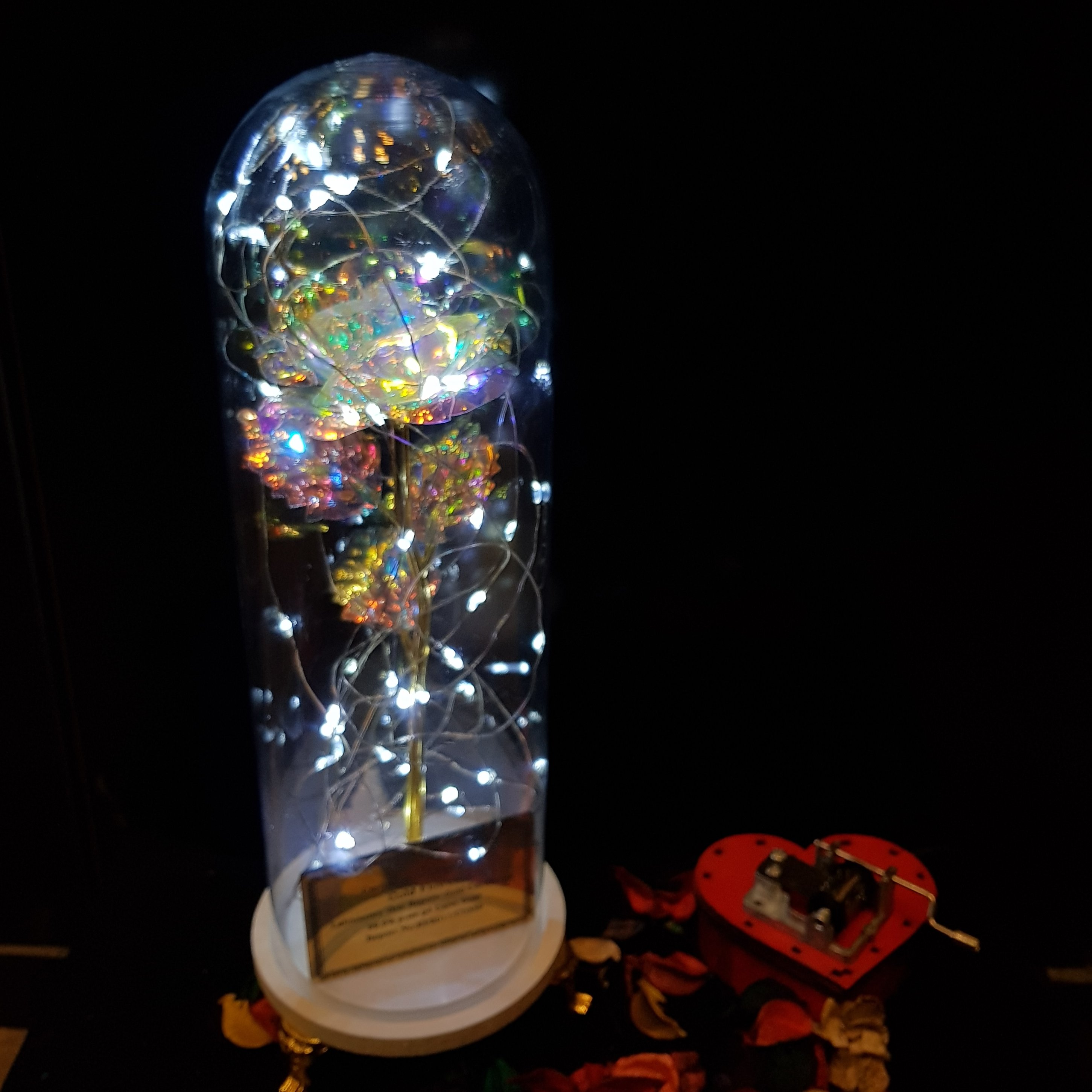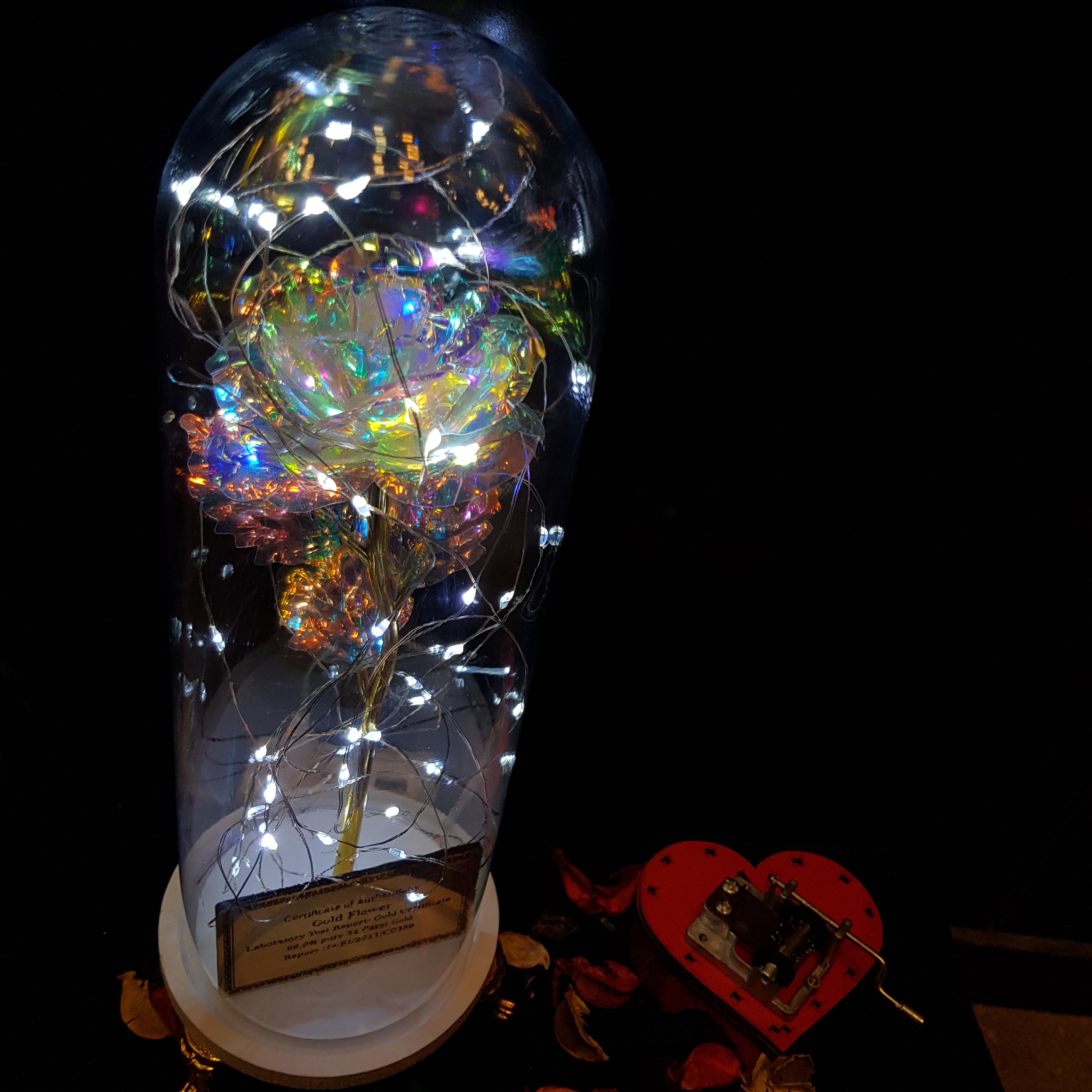 باکس گل رز هفت رنگ مدل استوانه حدیث سفید دارای پایه فلزی قابلیت روشنایی با اتصال به پاور بانک و شارژر گوشی بسیار زیبا شیک خاص و ماندگار