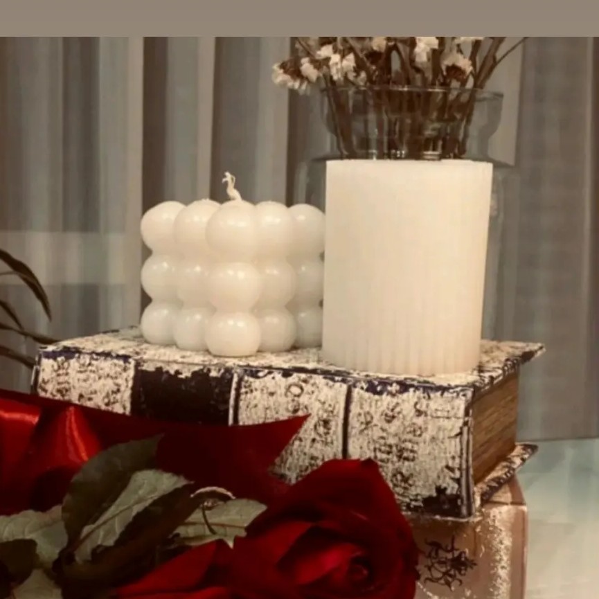شمع استوانه شیاردار وروبیک بزرگ دو عددی مبلمونسرا مدل 282034