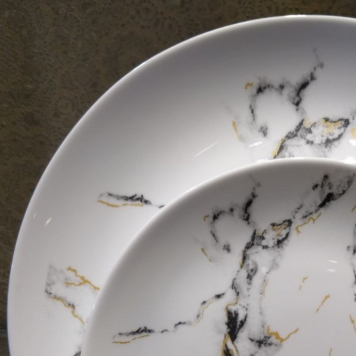 سرویس آرکوپال ۶نفره ۲۶پارچه مدل ماربل مشکی طلایی ✅طرح و رنگ ثابت✅ قابل استفاده در ✅ماشین ظرف شویی✅ ✅ماکروویو✅ ۶عدد پلوخوری ۶عدد خورشتخوری ۶عدد پیش دستی ۶عدد کاسه ماست خوری یک عدد دیس یک عدد کاسه بزرگ