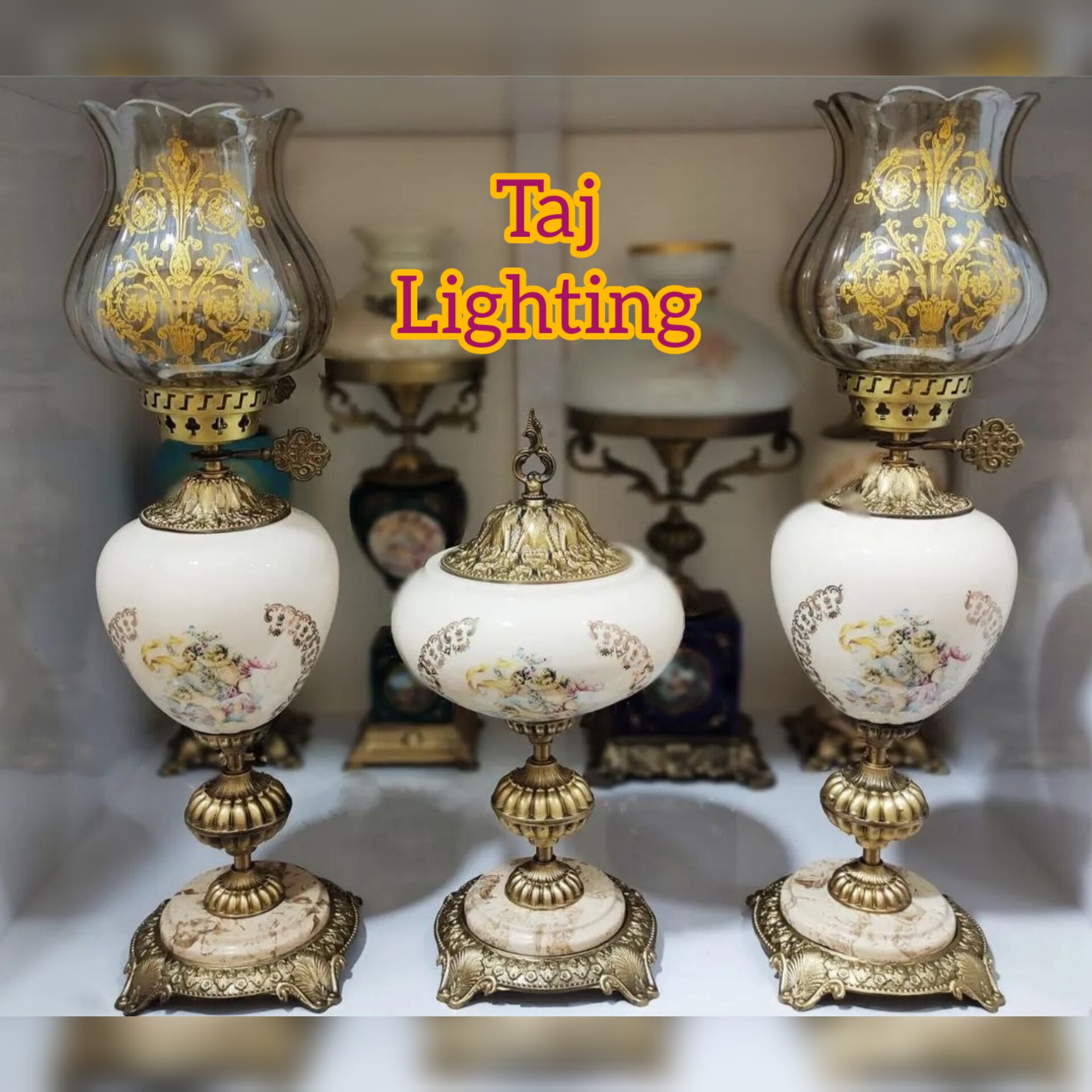 💥قیمت درج شده ، قیمت ست سه تیکه کامل می باشد جنس لاله : بلور رنگ لاله : شامپاینی گل دار جنس وسط تنه : چینی رنگبندی وسط تنه : سفید، زرشکی، سورمه ای ، فیروزه ای ، یشمی ، صورتی ، سبزابی جنس پایه سنگ و برنز با آبکاری آنتیک