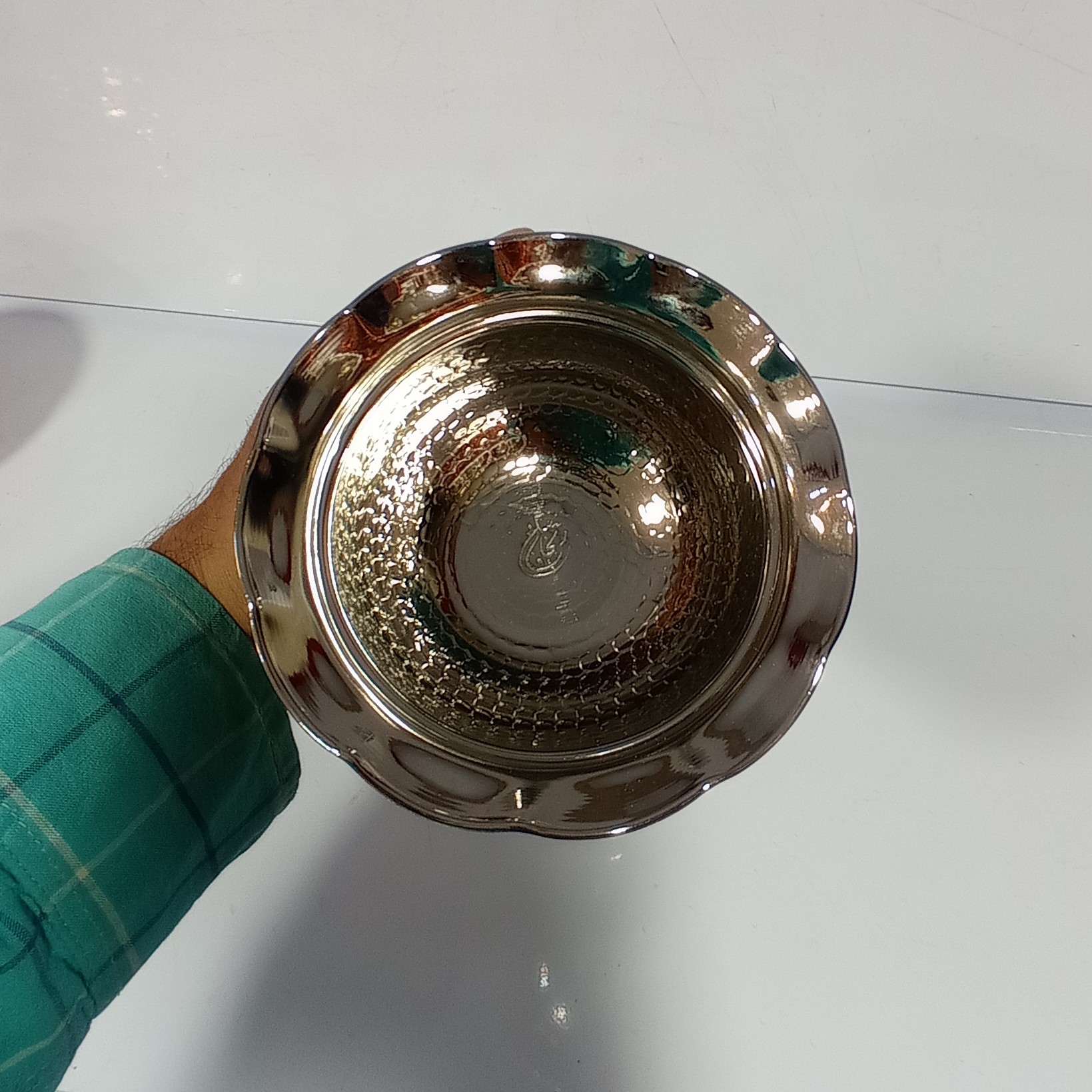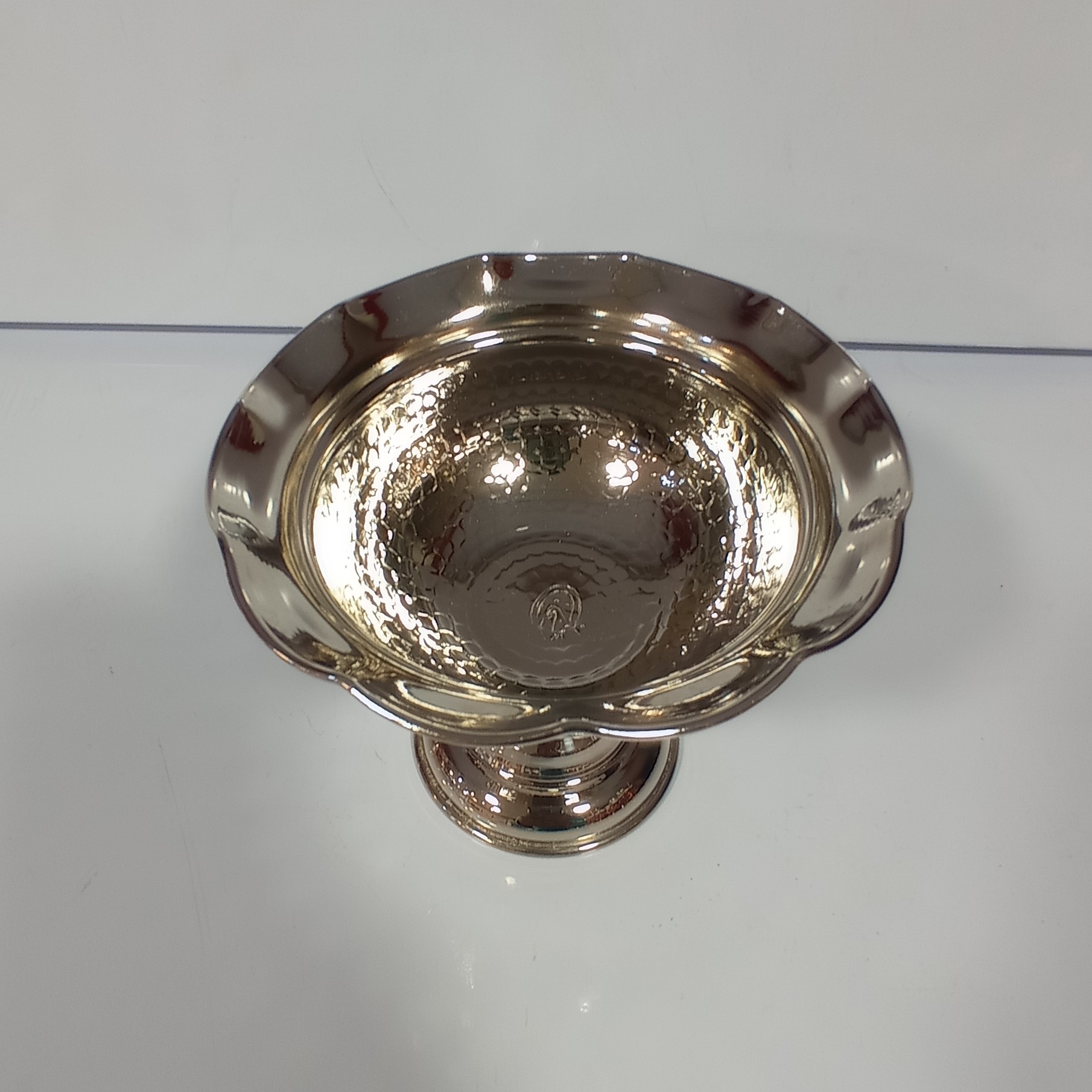 بستنی خوری مسی کروم فضلی زنجان درجه یک و ضخیم طرح دیبا قطر : ۱۲ سانتی متر ارتفاع : ۱۰سانتی متر