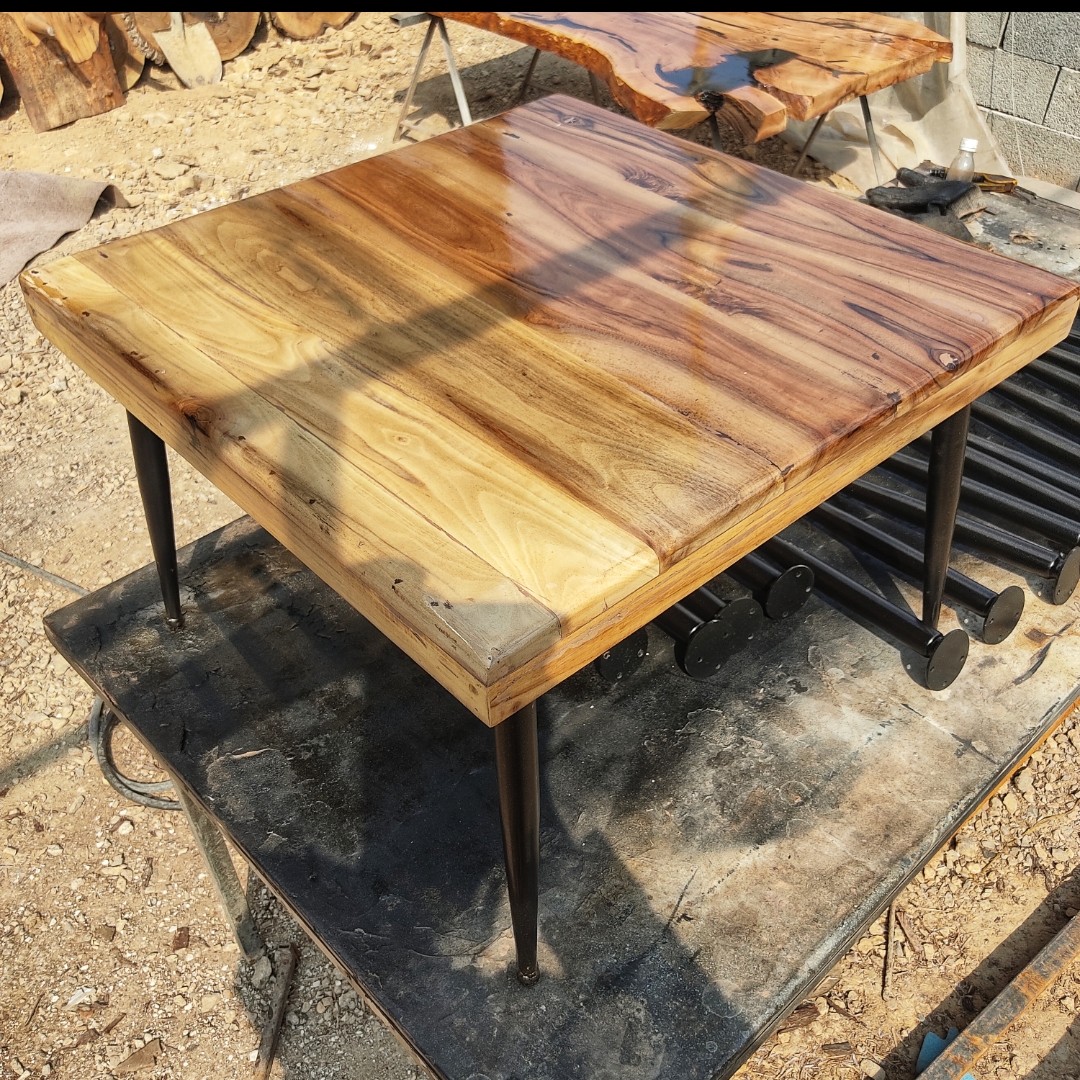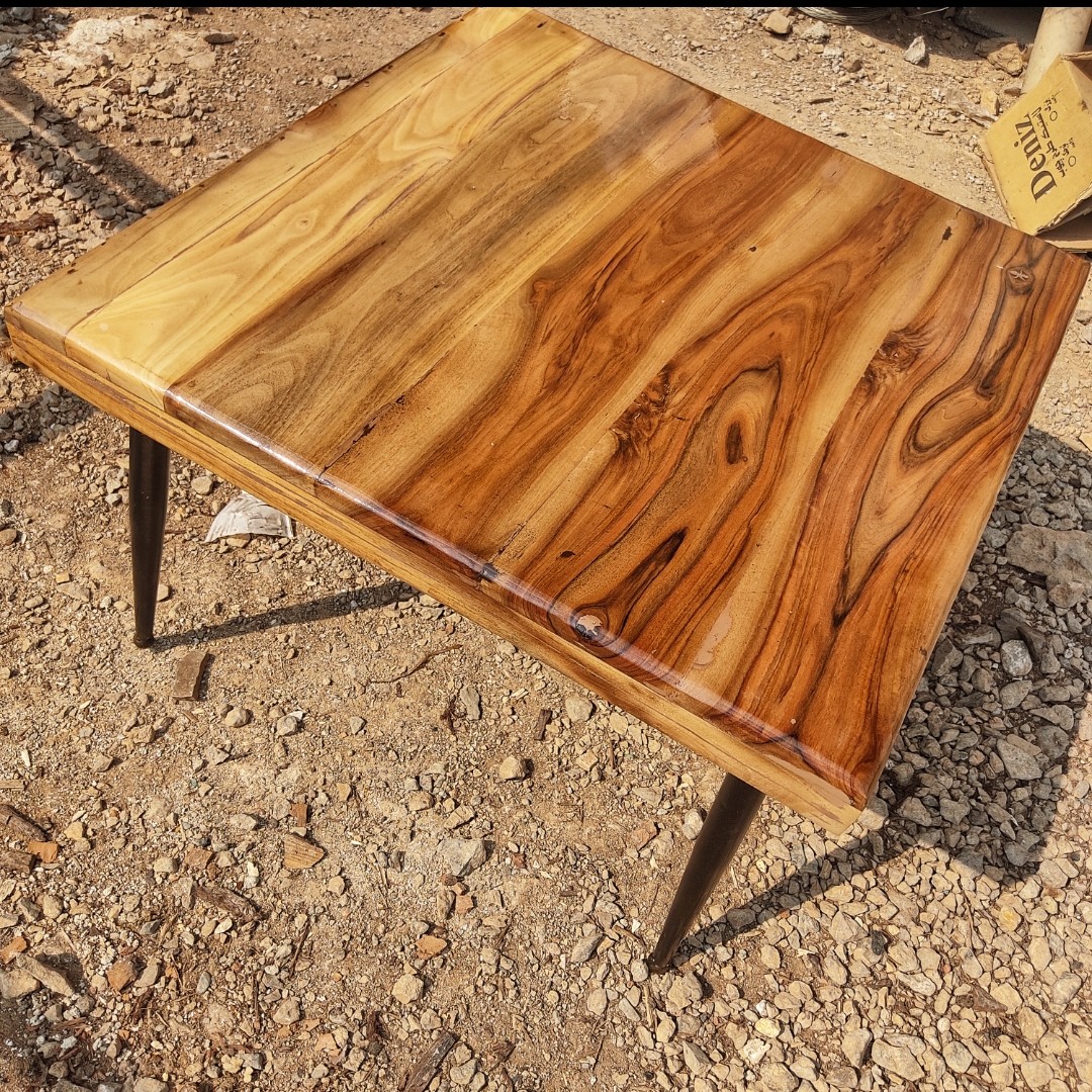 میز جلو مبلی و قهوه خوری تمام چوب گردو با پایه فلزی و روکش پلی استر براق در سایز 60در60 مبلمونسرا مدل 216978
