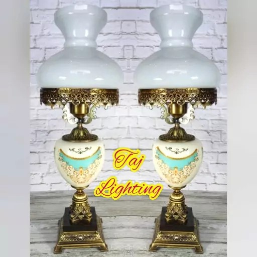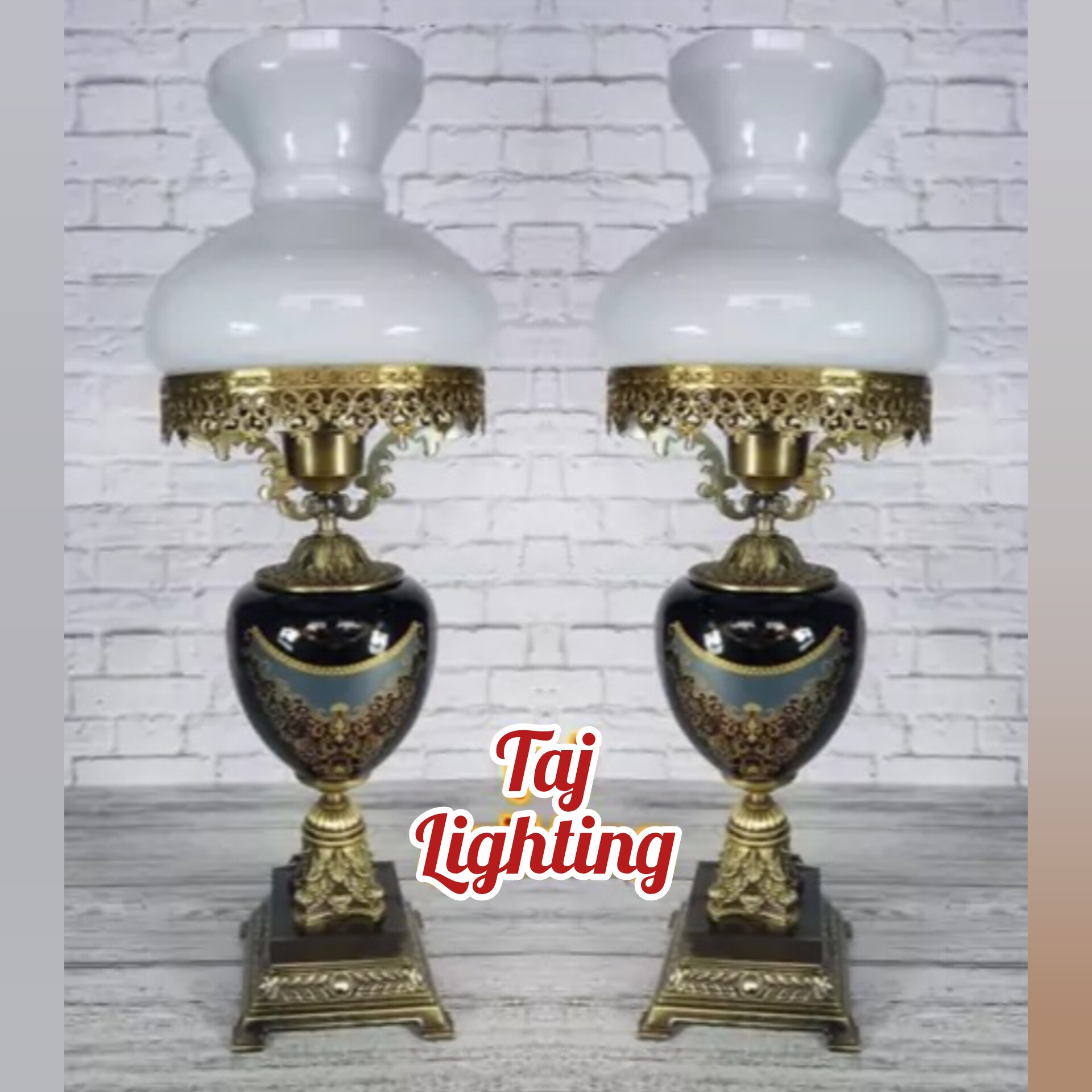 💥قیمت درج شده ، قیمت هر عدد چراغ می باشد جنس حباب : بلور رنگ حباب : سفید / عسلی جنس وسط تنه : سرامیک رنگبندی وسط تنه : سفید، مشکی، آبی جنس پایه سنگ و برنز با آبکاری آنتیک