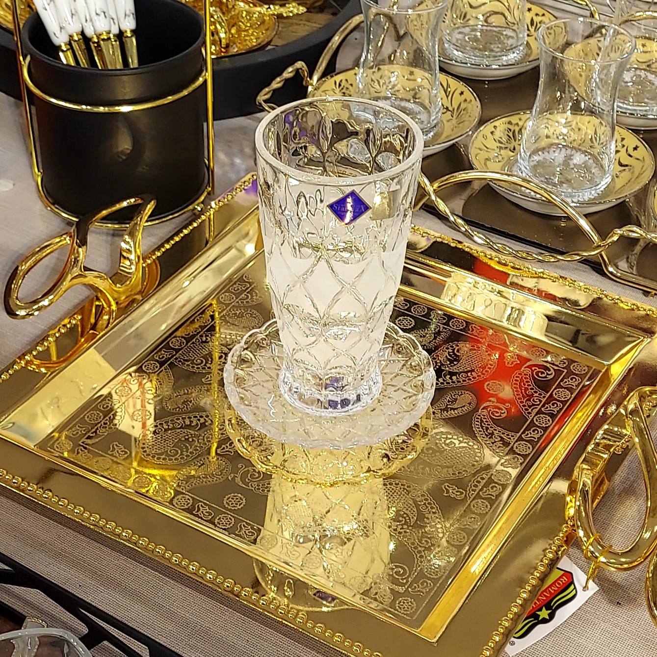 پارچ و لیوان بلند، لیوان کوتاه،نیم لیوان چای خوری و قندان انجلیکا نیز موجود هست.