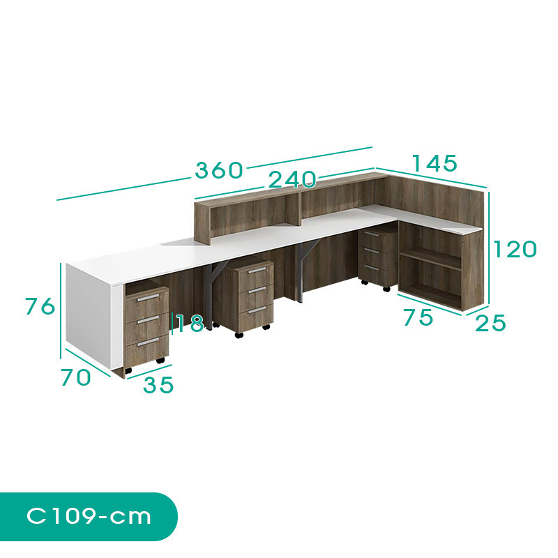 لطفا دقت فرمایید: ، طراح و تولید کننده اصلی این محصول با نام تجاری است. این محصول دارای لیبل می باشد. لطفا قبل از خرید نام فروشنده را بررسی فرمایید. میز کانتر مدل C109 با ظاهری ساده و زیبا، مناسب دکوراسیون منزل یا اداری با طراحی مینیمال است. میز کانتر مدل C109 دارای 4 قفسه و 3 فایل کشو به صورت مستقل می باشد. ابعاد: طول 360 سانتی متر - عرض 145 سانتی متر - ارتفاع 120 سانتی متر جنس محصول MDF می باشد.
