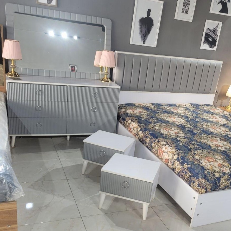 سرویس خواب دونفره تخت دونفره عرض ۱۶۰ میزآرایش پاتختی ۲ عدد صندلی آینه
