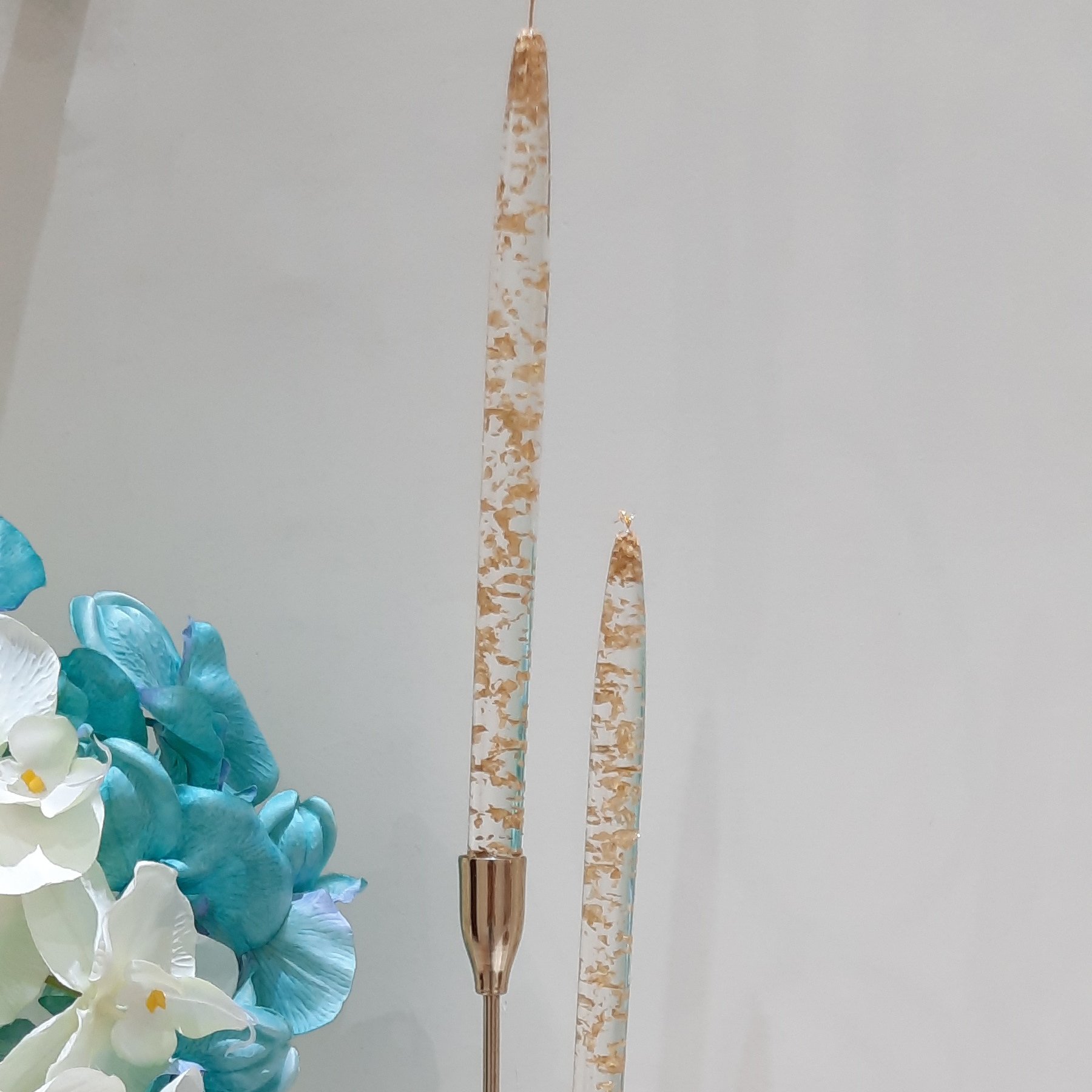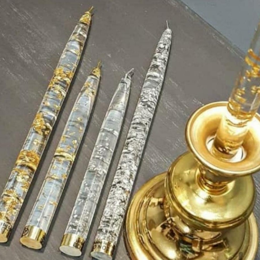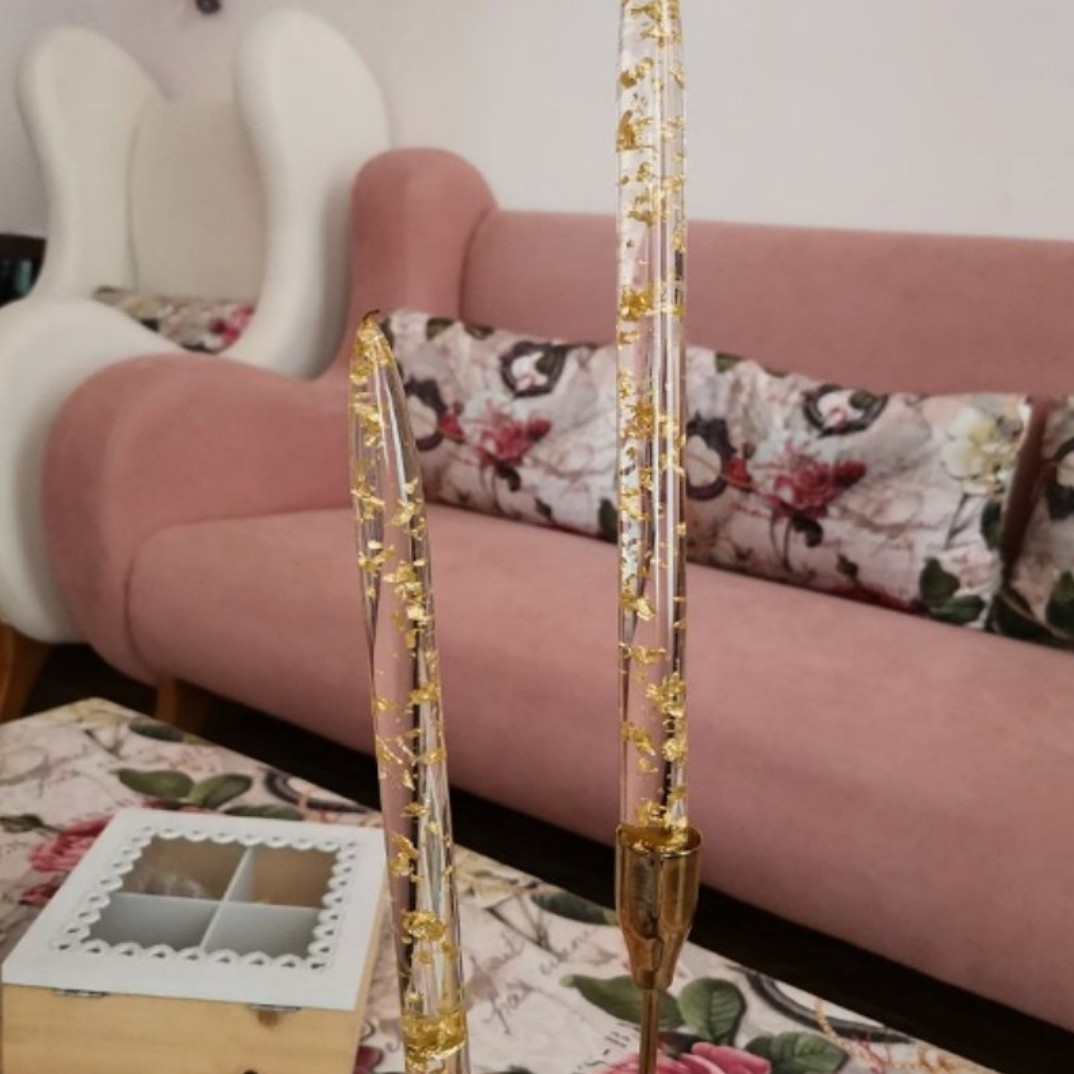 شمع کریستال رنگ طلایی ارتفاع30سانت قیمت برای یک عددشمع شاین.نسوز قطر1.7 جنس رزین اپوکسی باپولک ورق طلا جنبه دکوری دارد مبلمونسرا مدل 279751