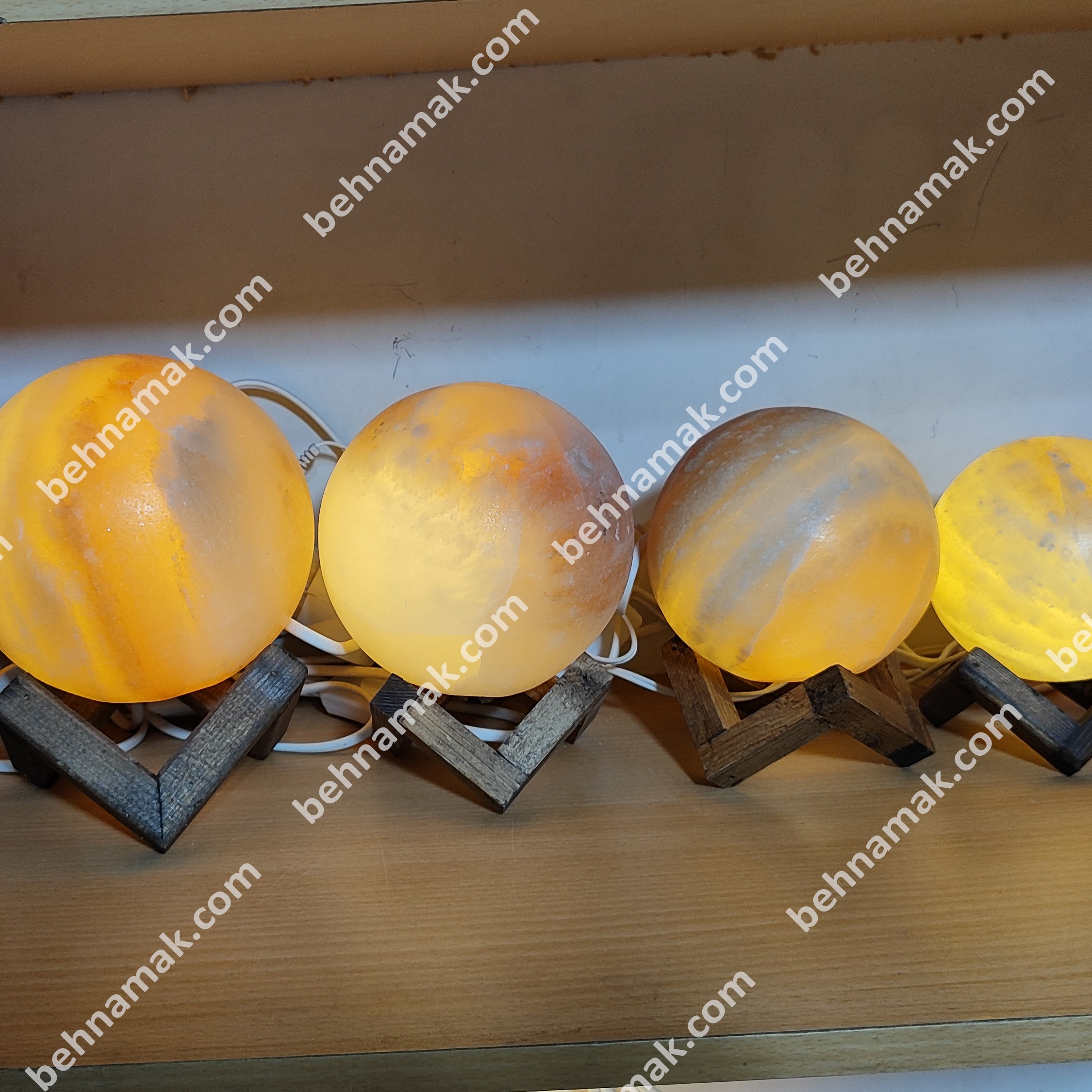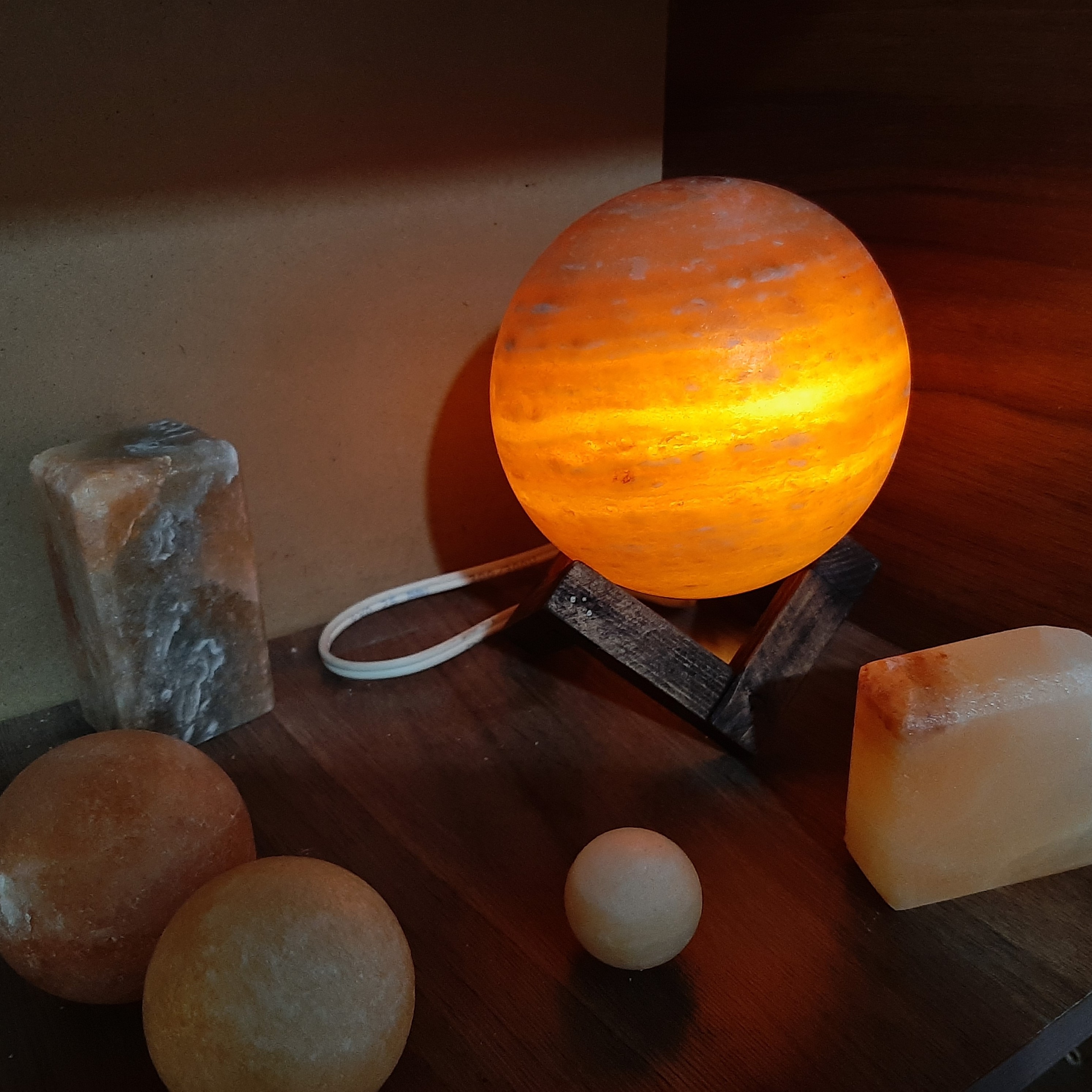 آباژور گوی سنگ نمک 14 با پایه چوبی. مبلمونسرا مدل 234553