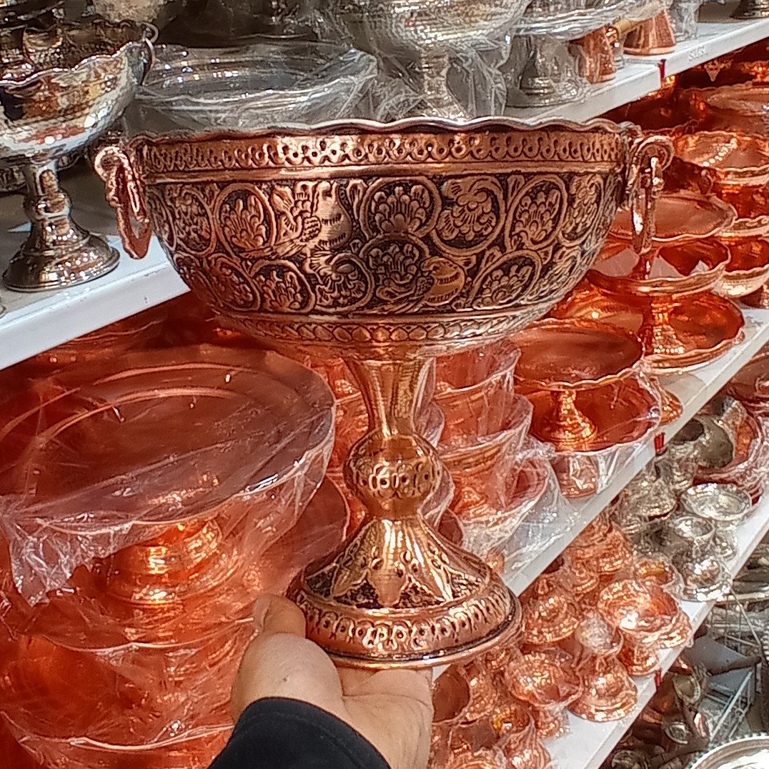 جام میوه خوری و آجیل خوری مسی قلم زنی شده سایز 4 نانو مبلمونسرا مدل 264739