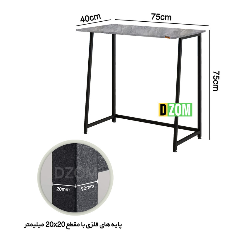 میز لپ تاپ DZom مدل CD_J100_75_GR محصولی سبک، شیک و در عین حال جذاب و کارآمد از سری تولیدات میباشد. این محصول از پایه های فلزی با مقطع 20x20 میلیمتر و رنگ رویه الکترو با ی و دوام بالا ساخته شده است. همچنین پایه های پیچی، قابلیت تنظیم نسبت به سطح زمین را دارد تا بهترین تراز جهت جلوگیری از تکان خوردن را ایجاد نماید. صفحه محصول از جنس MDF درجه یک برجسته به رنگ طوسی می باشد. این محصول با طول 75cm، عرض 40cm و ارتفاع 75cm عرضه می شود. به این نکته توجه شود که تنوع رنگ انتخابی کالا تنها مربوط به رنگ پایه های فلزی میباشد و محصول به صورت کاملا مونتاژ شده و آماده استفاده برای مشتریان ال می گردد.