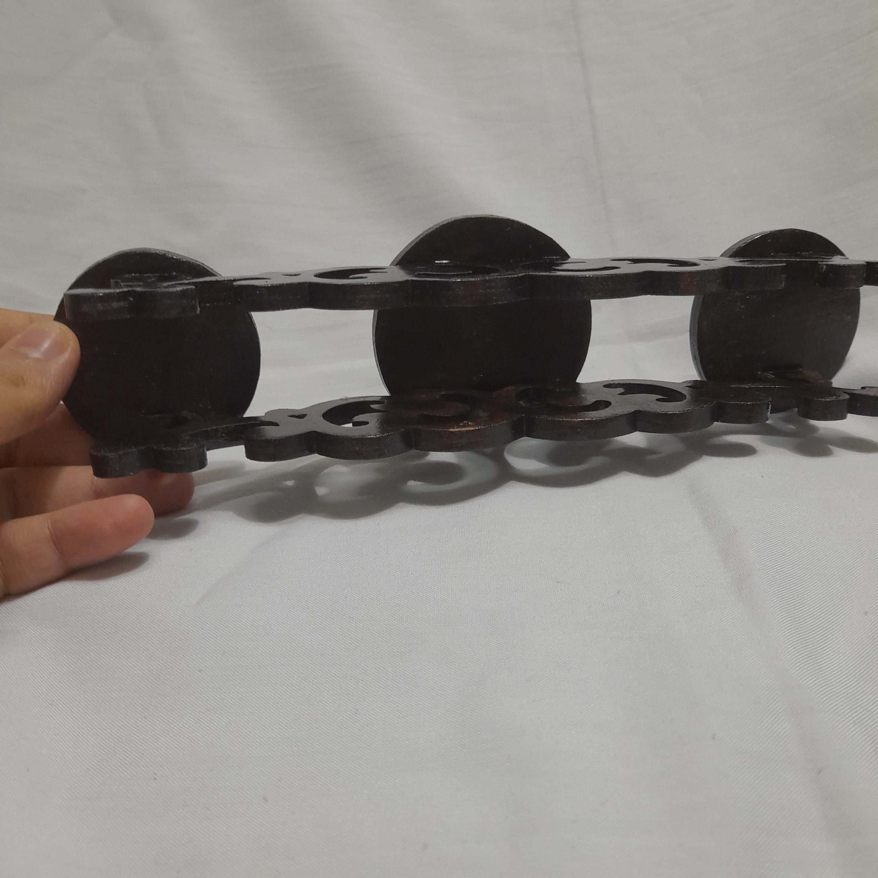 جاشمعی سه تایی چوبی معرق کاری شده رنگ تیره جلاخورده استفاده از چوب مرغوب ایرانی