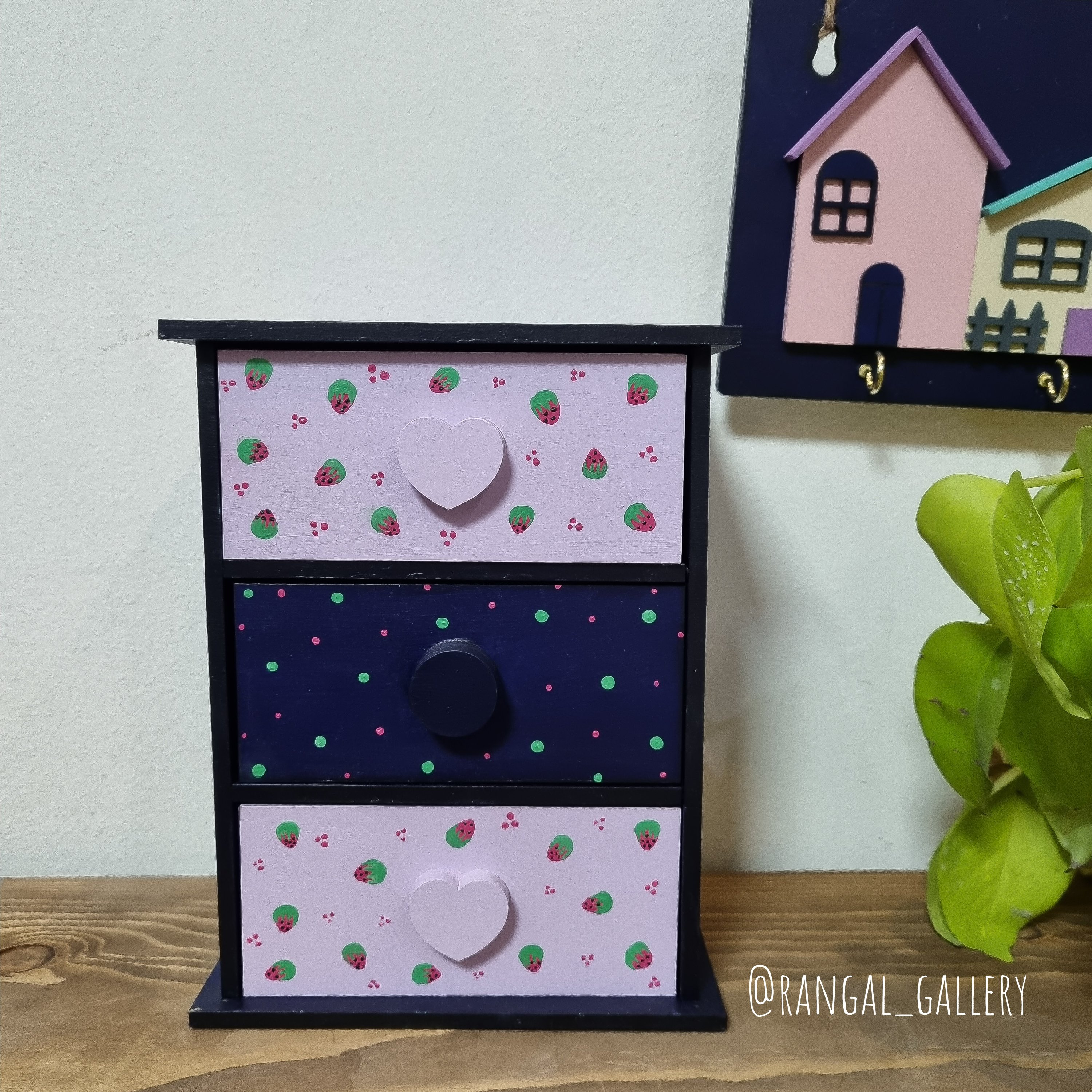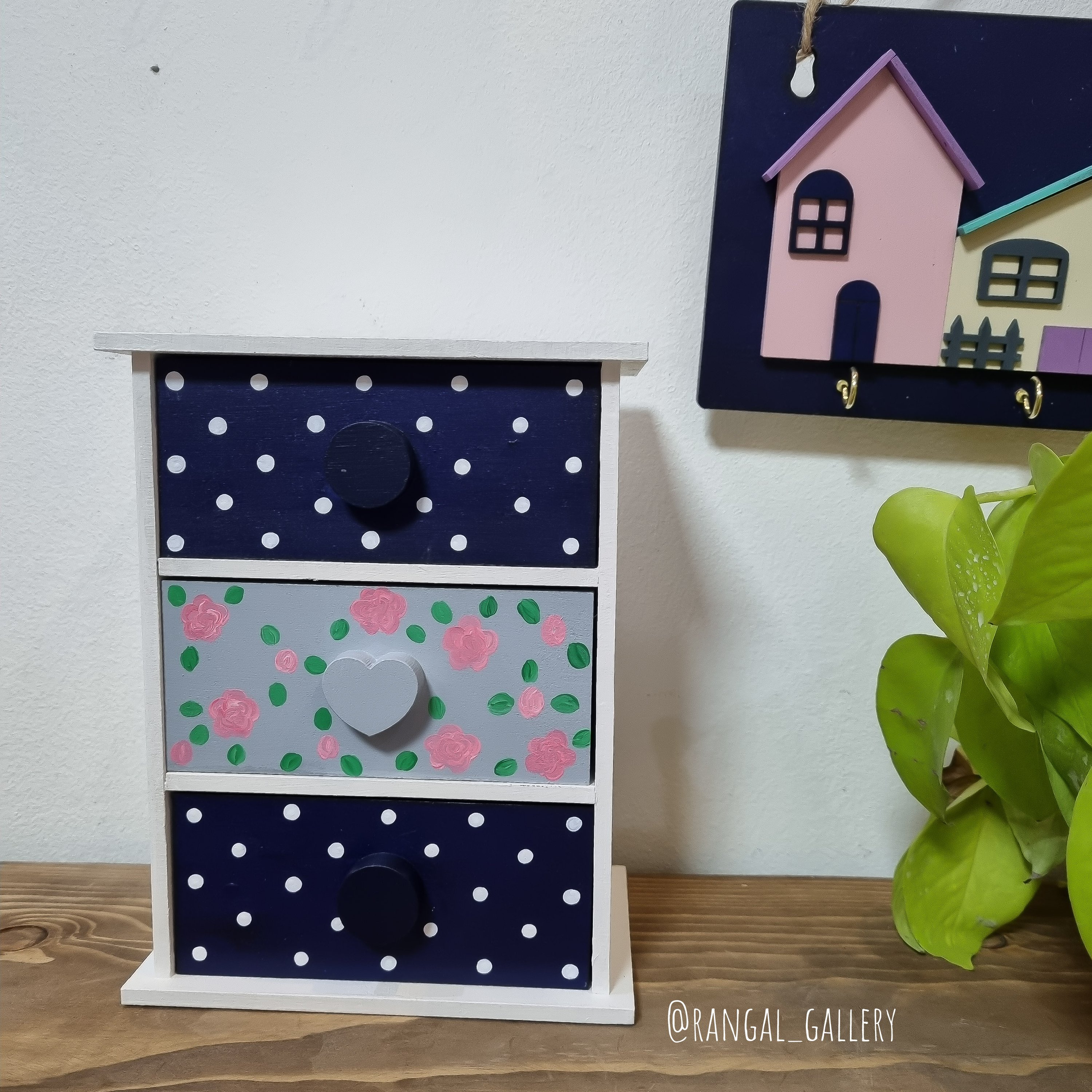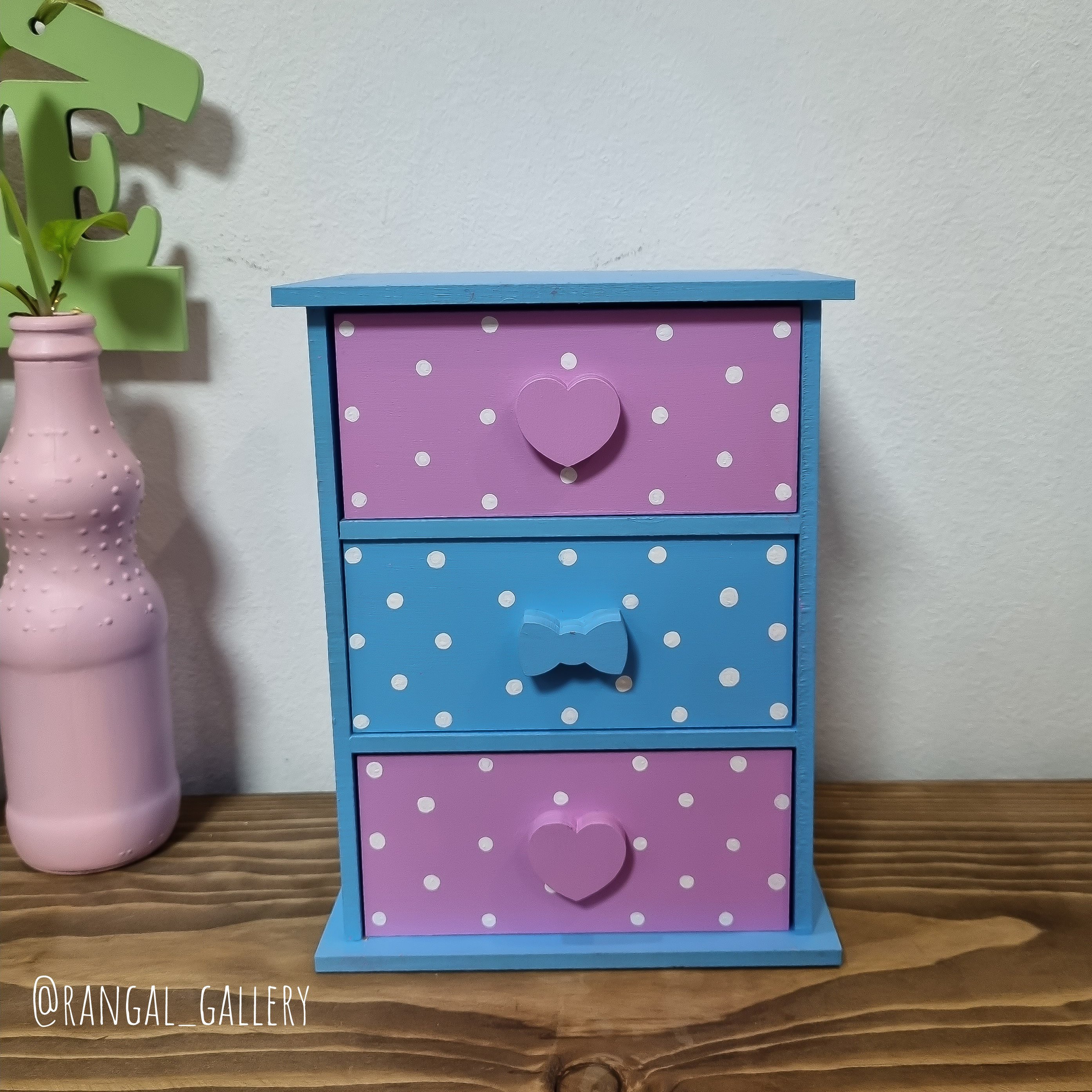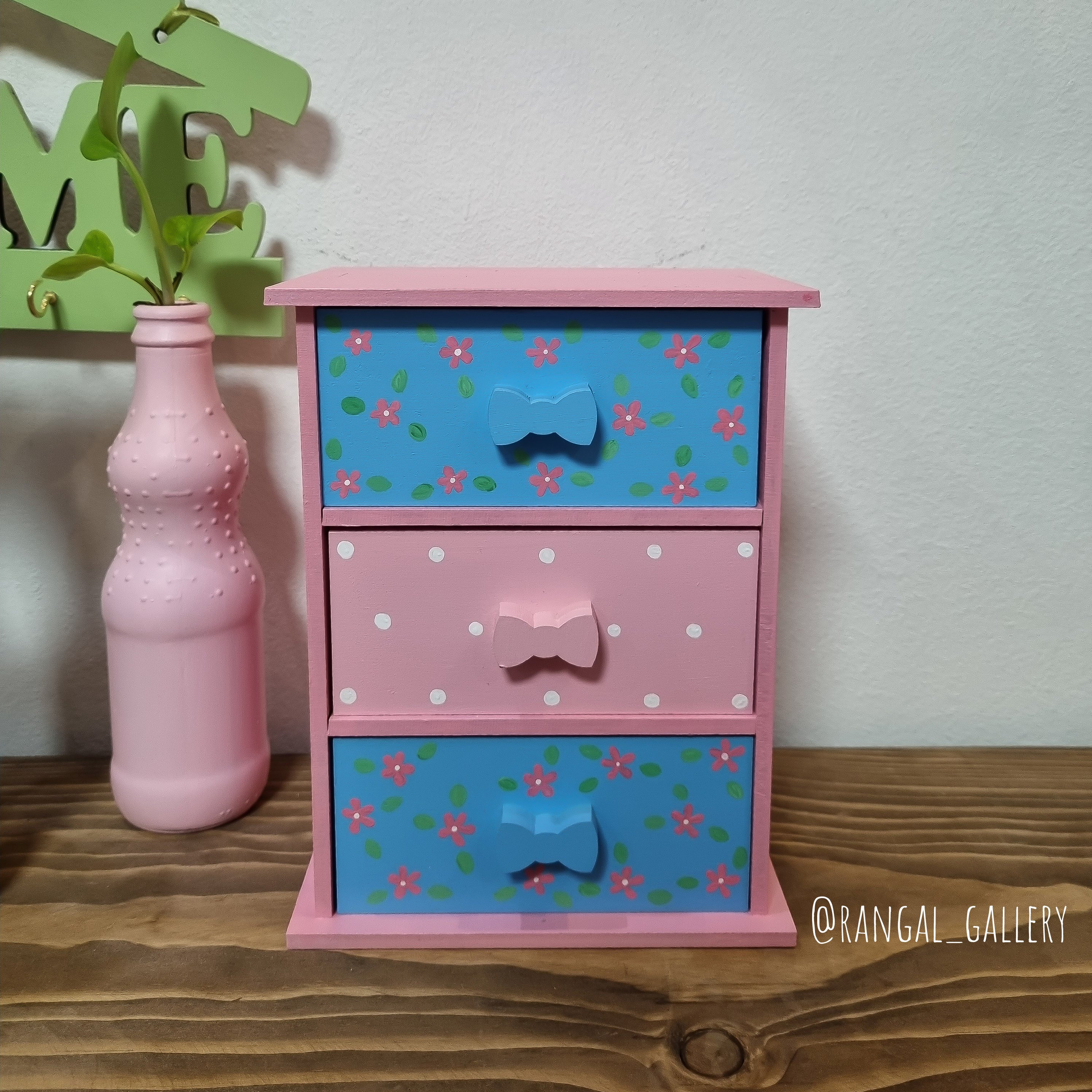 ❌️هزینه ارسال هست❌️ . توضیحات با دقت خونده بشه👇🏻👇🏻👇🏻 🚫بی رنگ هر رنگی بجز سفید هست که قابل سفارشه و موجود. موقع سفارش رنگ مدنظر رو بفرمایید. 🚫انتخاب رنگ صورتی به منزله ی این هست که محصولتون طرحدار هست. میتونه طرح گل نقاشی شده با دست یا... باشه. نقاشی شده با دست و کار شده با رنگ های هنری با کیفیت از کشوهاش میشه برای جای گیره، کش مو، لاک، ابزار، لوازم خیاطی، ادویه جات آشپزخانه و... استفاده کرد. قبل از ثبت سفارش از موجودی محصول مورد نظر مطمئن بشین. ابعاد هم حتما قبلش چک کنید، به سانتی متر هست ابعادش. قابل سفارش در رنگ و طرح دلخواهتون هست. بچگانه، زنانه، توی رنگ های تیره و مردانه هم قابل سفارش هستن. محدودیتی توی رنگ و طرح وجود نداره.