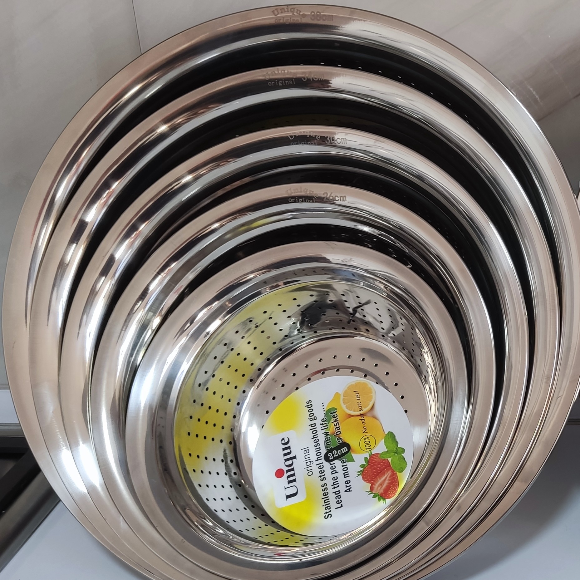 سرویس ۱۰ پارچه شامل ۵ عدد آبکش ۵ عدد لگن می باشد شروع سایز ها از ۲۲ و به ترتیب ۲۶،۳۰،۳۴،۳۸ می باشد حک شده مارک یونیک