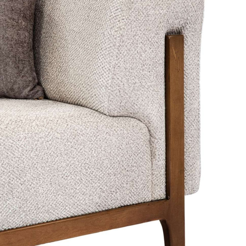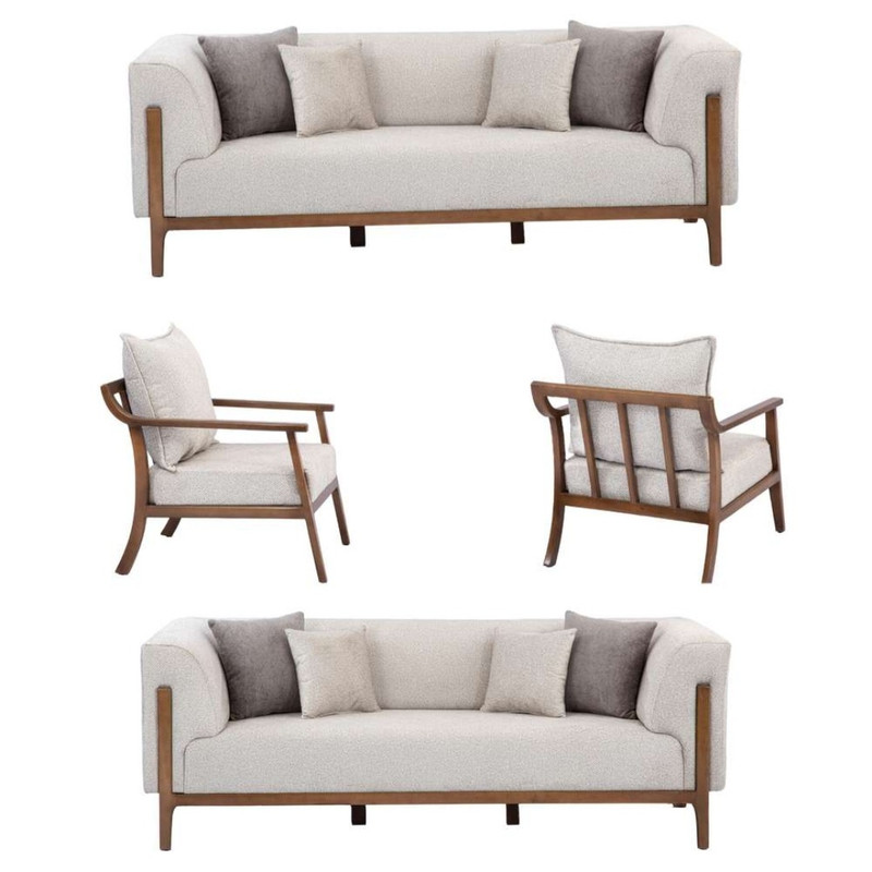 ست هشت نفره ی شامل دو کاناپه سه نفره با نمای چوبی و نیز دو مبل تک نفره با طرح متمایز با جدید ترین طراحی و با استفاده از بهترین متریال مصرفی ارائه می شود.اسفنج مصرفی در قسمت نشیمن محصول اسفنج 35 کیلویی ویژه که مرغوب ترین نوع اسفنج است استفاده شده که نشیمنی راحت و با دوام را به ارمغان می اورد.پارچه ی انتخاب شده برای این محصول پارچه ی لینا میباشد که علاوه بر مرغوبیت بالا در سبک مینیمال کاربرد زیادی دارد که قابل شست و شو میباشد.در مجموع این محصول با نمایی ساده و جذاب,نشیمنی راحت و کیفیتی بالا,انتخابی ایده ال برای دوستداران مبلمان مدرن می باشد.