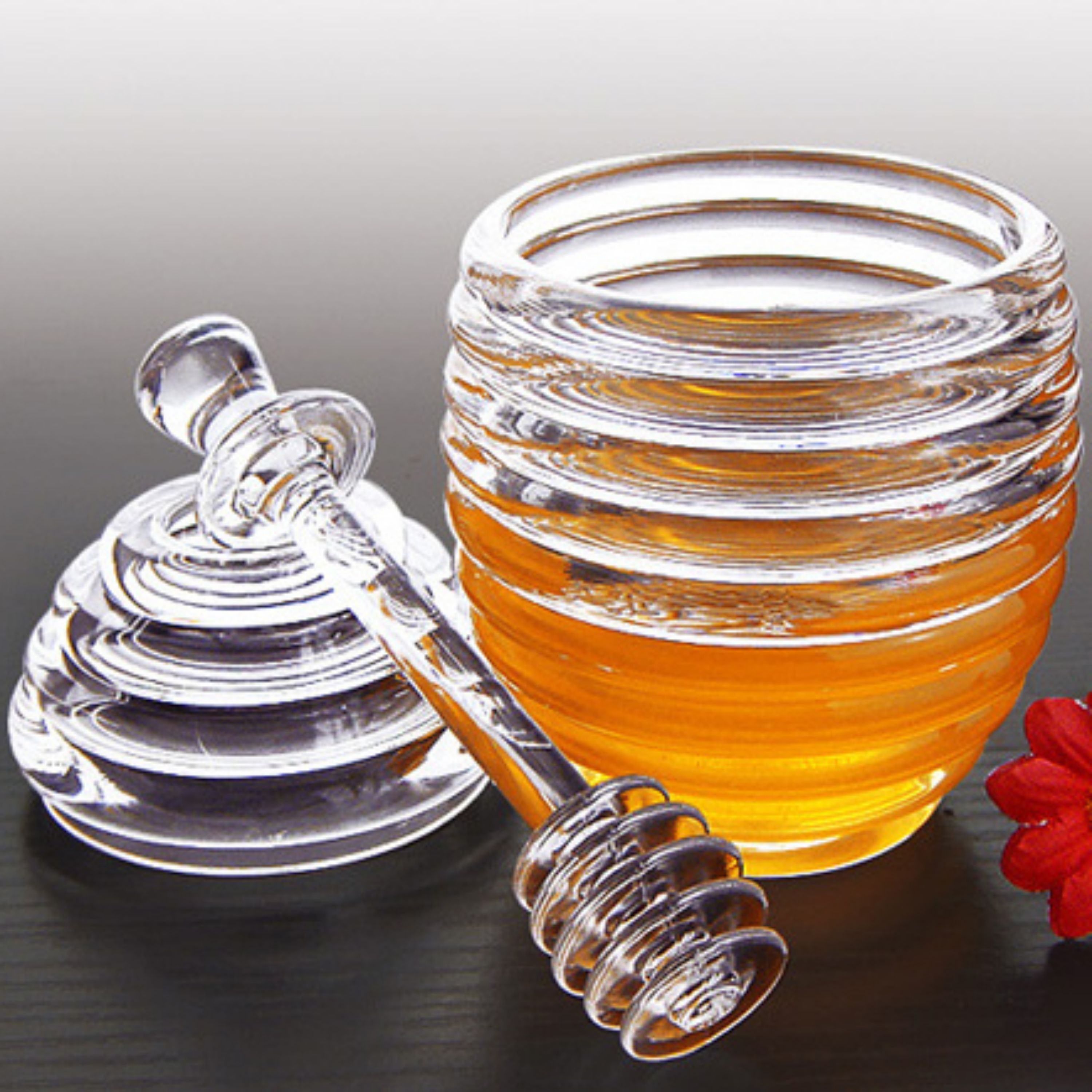 عسل خوری اکرولیک ، محصولی جدید با طراحی بسیار زیبا و در عین حال متفاوت است . ظرف عسل خوری اکرولیک به شکل کندوی زنبور عسل طراحی شده که در نوع خود بسیار جالب توجه می باشد . این ظرف از سه قسمت شامل بدنه اصلی ظرف ، درب و همچنین قاشق مخصوص عسل خوری تشکیل شده است . ظرف مخصوص عسل خوری از جنس اکرولیک شفاف تولید شده و ظرفیتی معادل 250 میلی لیتر را دارد . دقیقاً در قسمت مرکز درب ، حفره ای قرار داده شده که امکان بستن درب با وجود قاشق درون ظرف را فراهم آورده و دیگر نیازی نیست قاشق را بردارید تا درب بسته شود . مابین دسته و سر قاشق نیز نوعی لبه دایره ای شکل وجود دارد که در زمان بسته بودن درب ظرف ، حفره میانی را کاملاً می پوشاند و همچنین امکان قرار گرفتن قاشق بر روی دیواره ظرف عسل را فراهم می کند . از ظرف عسل کندو علاوه بر عسل می توانید برای مربا ، شیره خرما و ... استفاده نمایید .