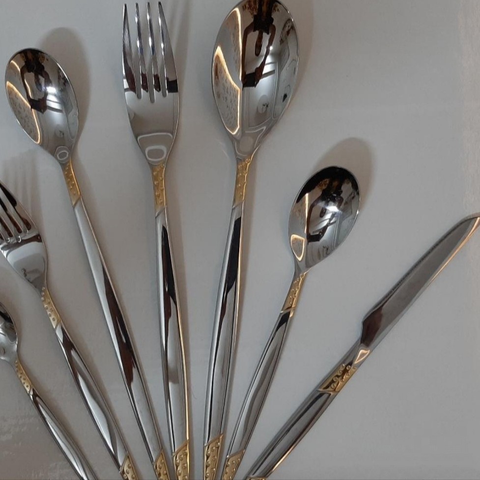 سرویس قاشق و چنگال یونیک دهانه اروپایی استیل نگیر نیم طلایی مبلمونسرا مدل 288330