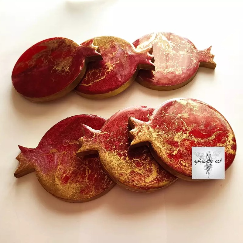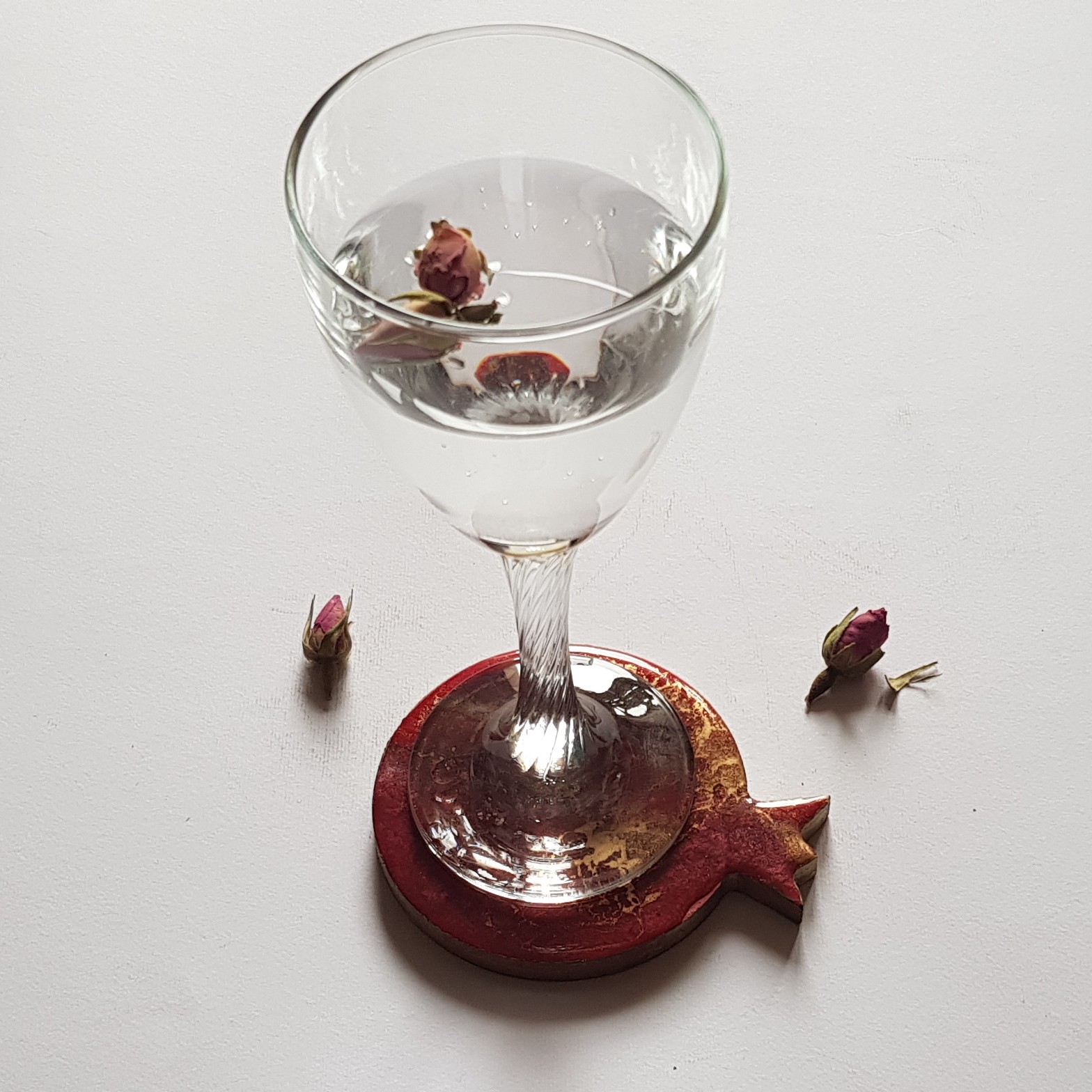 زیر لیوانی چوب و رزین اناری قرمز 10 سانتی متری نشکن و براق مبلمونسرا مدل 299126