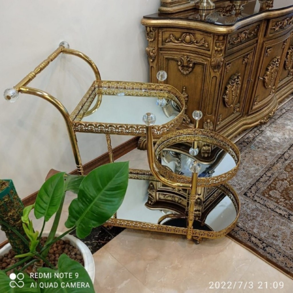میز بارسه طبقه فلزی طلایی ونقره ای مبلمونسرا مدل 221656