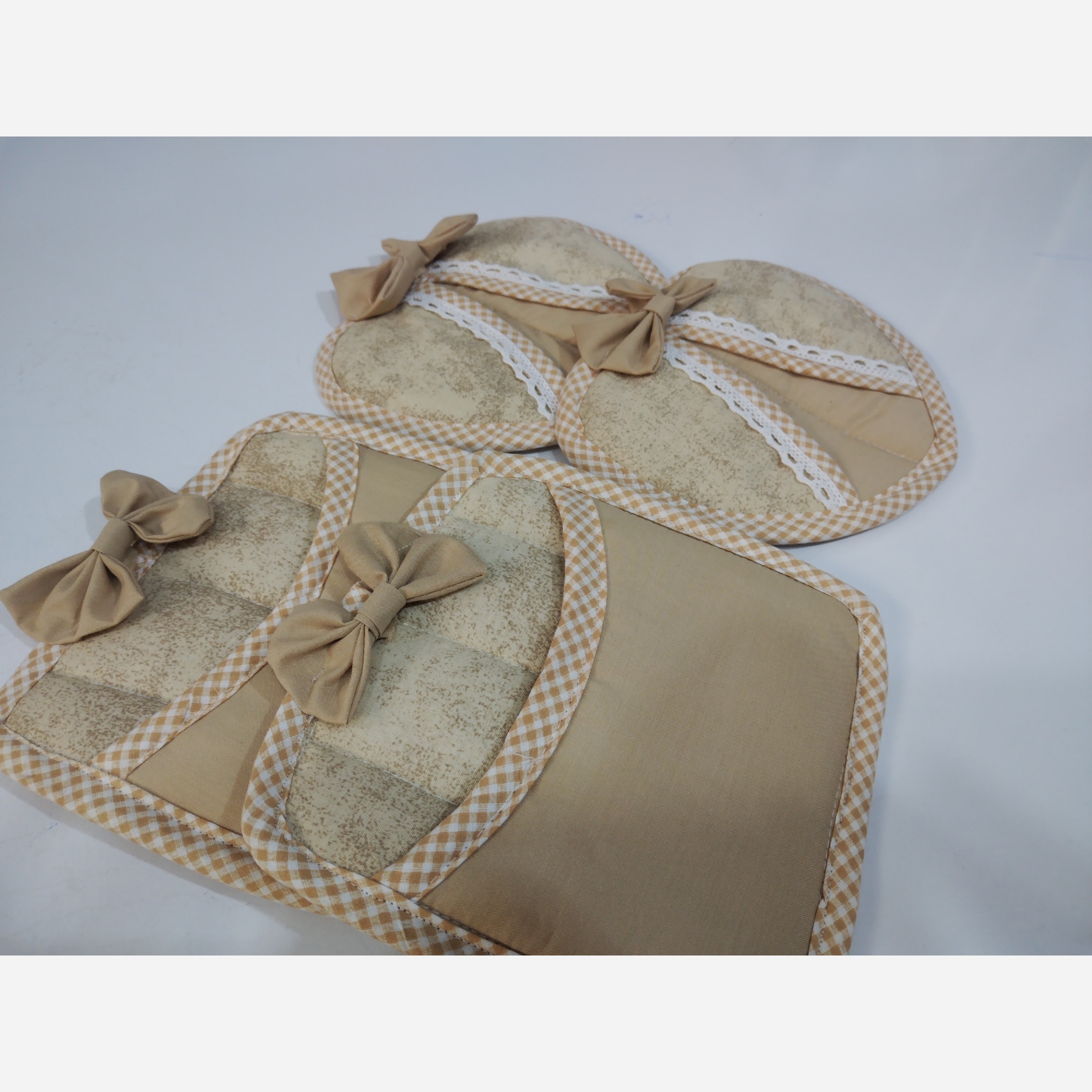 محصول ما باپارچه تترون نخ ولوازم مصرف شده در سرویس از جمله پشت پیشبند ونمگیر از صفره بیمارستانی وکیسه نان وسبزی از سلفونه اعلا وتور ولایه داخلش جنس فوق العاده استفاده شده ونوار دور محصولات هم از جنس خود پارچه استفاده شده🪡🪡 قبل از سفارش دادن حتما رنگبندی پارچه ها رو بپرسین