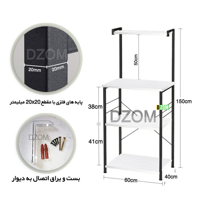 کافی بار دیزم DZom مدل SLF_F100_60_BRN محصولی سبک، شیک و در عین حال جذاب و کارآمد از سری تولیدات دیزم میباشد. این محصول از پایه های فلزی با مقطع 20x20 میلیمتر و رنگ رویه الکترواستاتیک با ماندگاری و دوام بالا ساخته شده است. همچنین پایه های پیچی، قابلیت تنظیم نسبت به سطح زمین را دارد تا بهترین تراز جهت جلوگیری از تکان خوردن را ایجاد نماید. صفحه میز از جنس MDF درجه یک برجسته طرح چوب به رنگ سفید می باشد. این محصول با طول 60cm، عرض 40cm و ارتفاع 150cm عرضه می شود. به این نکته توجه شود که تنوع رنگ انتخابی کالا تنها مربوط به رنگ پایه های فلزی میباشد و محصول به صورت کاملا مونتاژ شده و آماده استفاده برای مشتریان ال می گردد. توصیه میشود جهت حفظ ایمنی و ثبات بیشتر، محصول در یک یا دو نقطه به دیوار پیچ گرد.(یراق اتصال داخل بسته بندی موجود است).