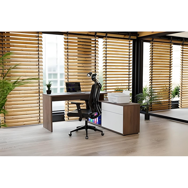 لطفا دقت فرمایید: ، طراح و تولید کننده اصلی این محصول با نام تجاری است. این محصول دارای لیبل می باشد. لطفا قبل از خرید نام فروشنده را بررسی فرمایید. میز مدیریت مدل M132 با ظاهری ساده و زیبا، مناسب دکوراسیون اداری با طراحی مدرن و لوکس می باشد. میز مدیریت مدل M132 دارای 2 درب، 1 کشو و 2 قفسه با طراحی خاص، مقاوم و در تنوع رنگی بالا می باشد. ابعاد: طول 150 سانتی متر - عرض 155سانتی متر - ارتفاع 75 سانتی متر جنس محصول ملامینه می باشد.