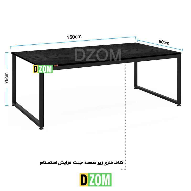 میز مدیریت DZom مدل CD_1700_150_B محصولی سبک، شیک و در عین حال جذاب و کارآمد از سری تولیدات است. این میز از رنگ رویه الکترو با ی و دوام بالا ساخته شده است. همچنین پایههای پیچی، قابلیت تنظیم نسبت به سطح زمین را دارد تا بهترین تراز جهت جلوگیری از تکان خوردن را ایجاد نماید. صفحه میز از جنس MDF درجه یک برجسته طرح چوب به رنگ مشکی است. این محصول با طول 150cm، عرض 80cm و ارتفاع 75cm عرضه میشود. به این نکته توجه شود که تنوع رنگ انتخابی کالا تنها مربوط به رنگ پایههای فلزی است.