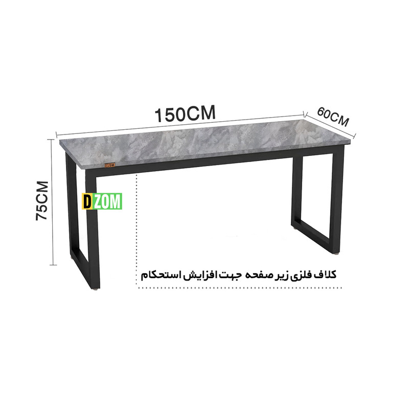 میز مدیریت DZom مدل CD_A100_150_GR محصولی سبک، شیک و در عین حال جذاب و کارآمد از سری تولیدات است. این میز که قابلیت استفاده به عن میز تحریر، میز کامپیوتر، میز جلسه، میز کار و حتی به عن یک میز تحریر را دارد، از رنگ رویه الکترو با ی و دوام بالا ساخته شده است. همچنین پایه های میز، قابلیت تنظیم نسبت به سطح زمین را دارد تا بهترین تراز جهت جلوگیری از تکان خوردن میز را ایجاد نماید. صفحه میز از جنس MDF درجه یک به رنگ طوسی است. این میز با طول 150cm، عرض 60cm و ارتفاع 75cm عرضه می گردد. به این نکته توجه شود که تنوع رنگ انتخابی کالا تنها مربوط به رنگ پایه های فلزی است.