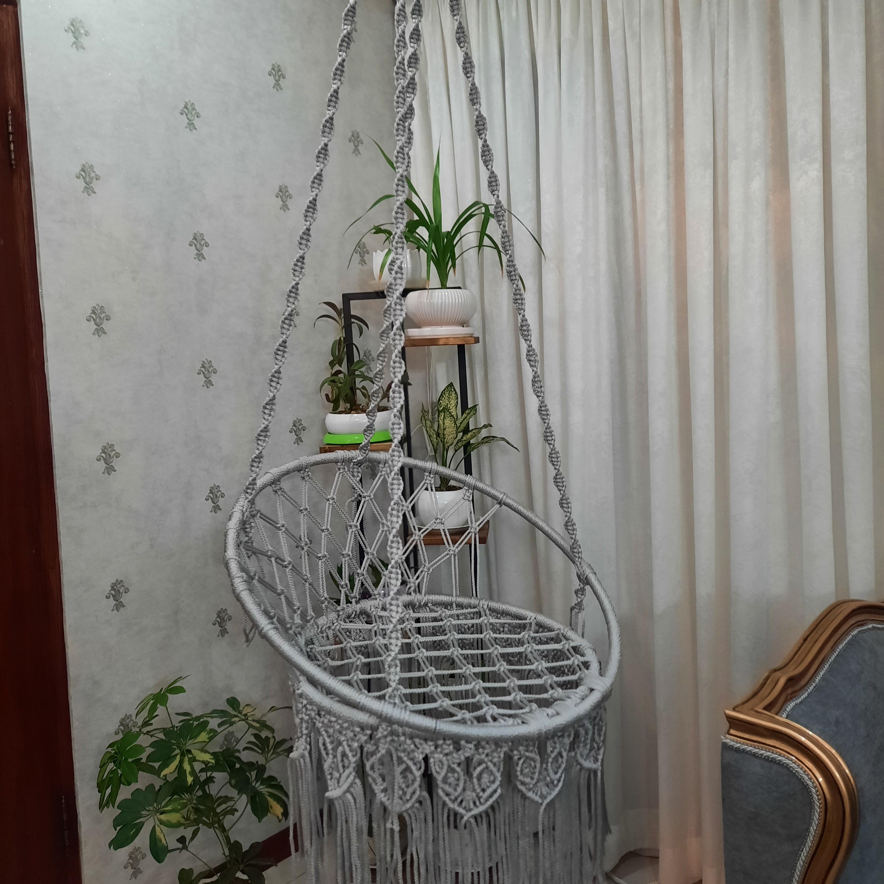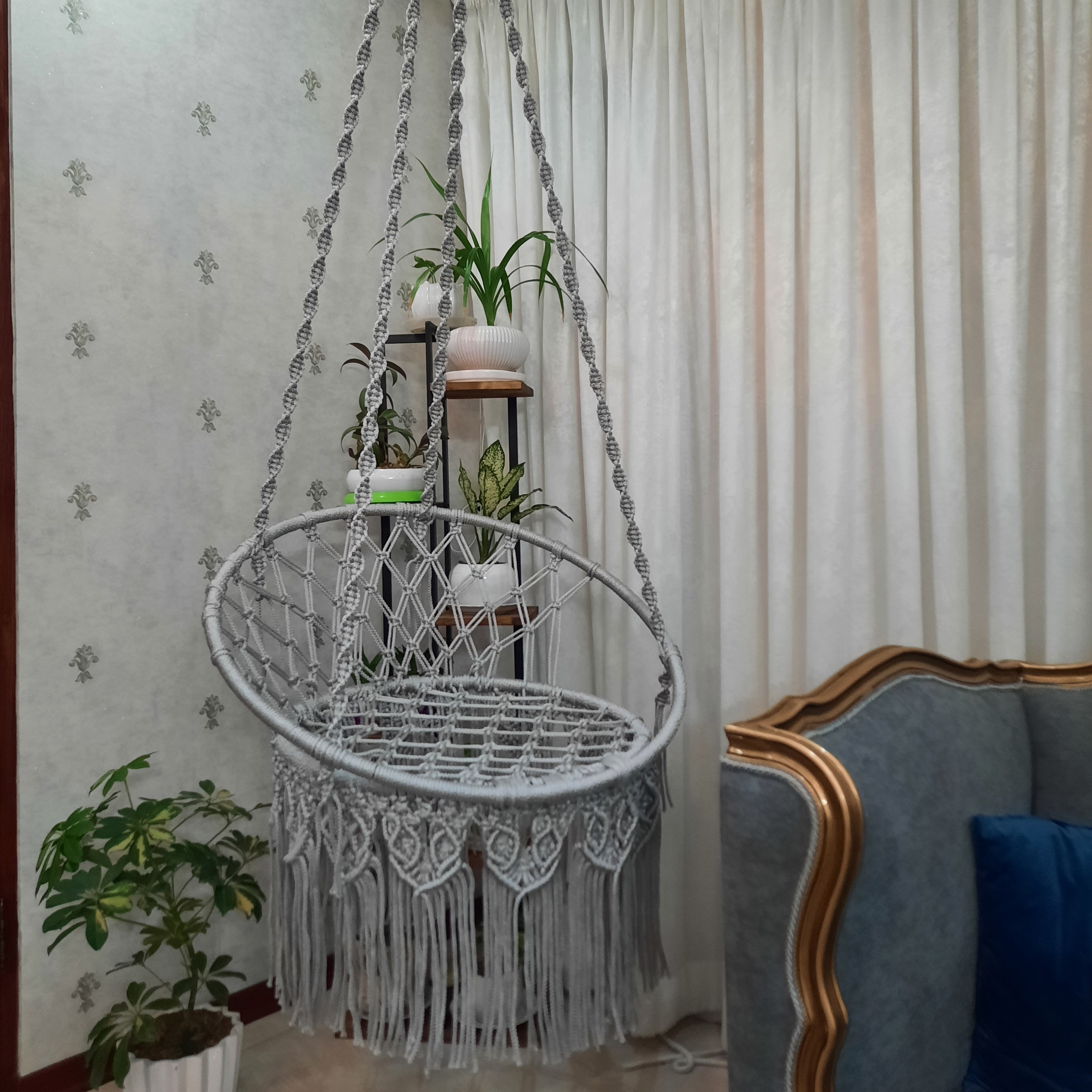 تاب مکرومه بافته شده با نخ مخصوص تاب و براق تحمل وزن تا۱۰۰ کیلو کفی ۶۰سانت و دور ۸۰سانت