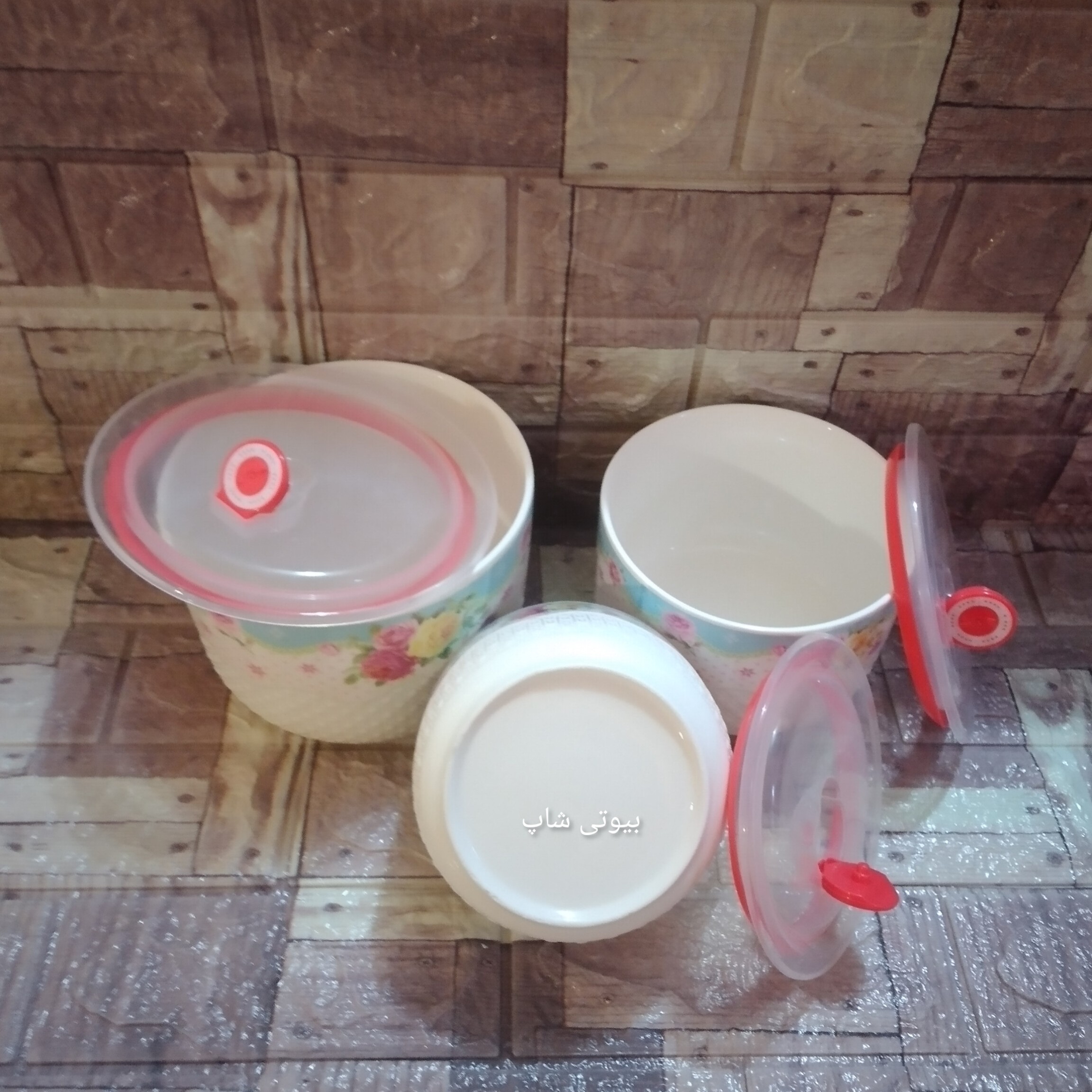 ظروف سرامیکی درب دار در 3 سایز بزرگ مناسب یخچال فریزر ، ماکروفر ، داخل کابینت دارای درب سوپاپ دار برای تخلیه هوا بسیار کاربردی در منزل و محل کار محصول وارداتی از چین و در طرح های متنوع 🔴توضیح اینکه عزیزانی که کیپ شدن درب ظروف براشون مهم هست درب سایز وسطی آزاد هست و کیپ نمیشه🔴 پهنای دهانه کاسه ها :17 - 15 - 13 سانت عمق یا گودی کاسه ها : 12- 10 - 9 سانت