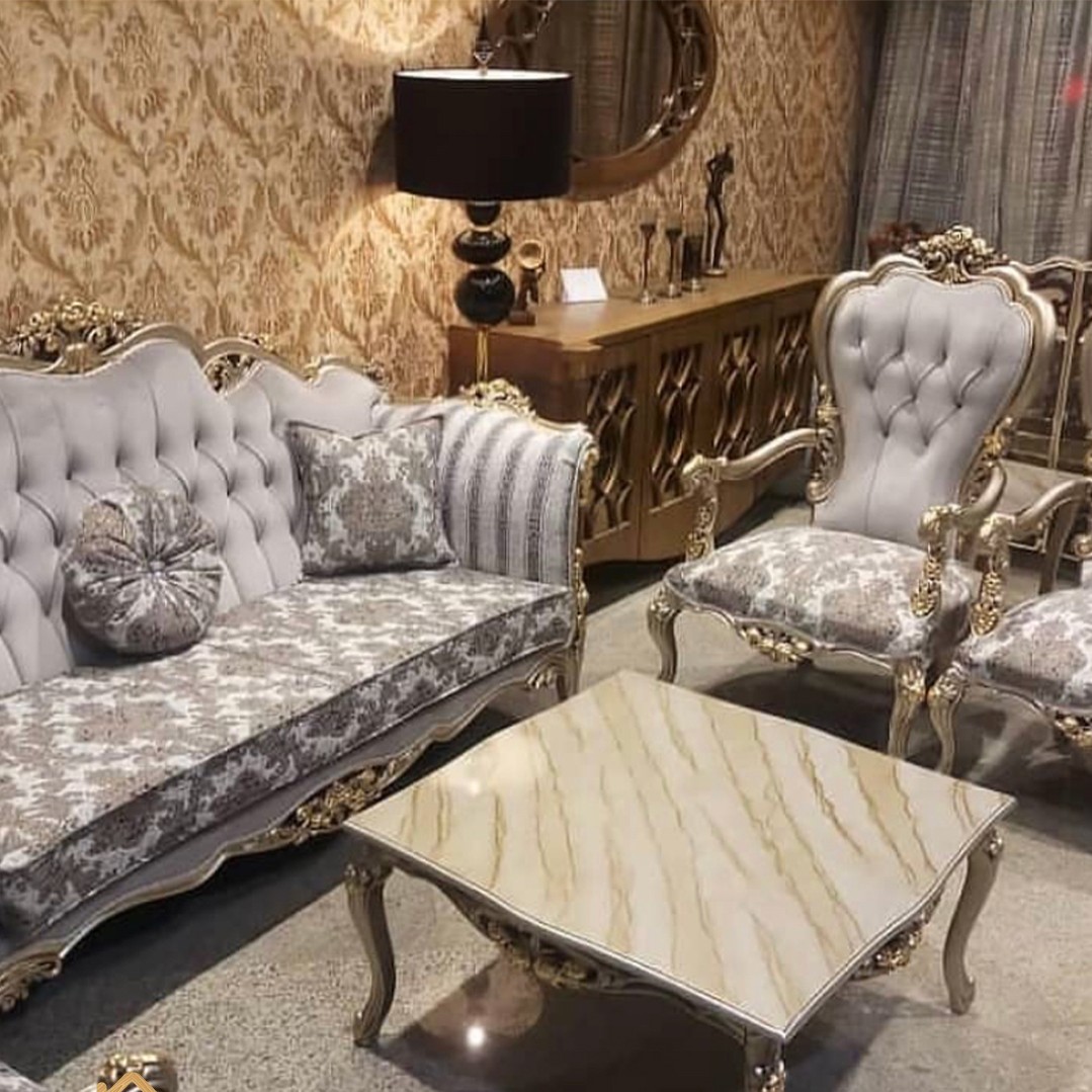 مبل کلاسیک وپرطرفدار آراد ازجنس چوب راش گرجستان وگردوی سیاه .7نفره مبلمونسرا مدل 213490