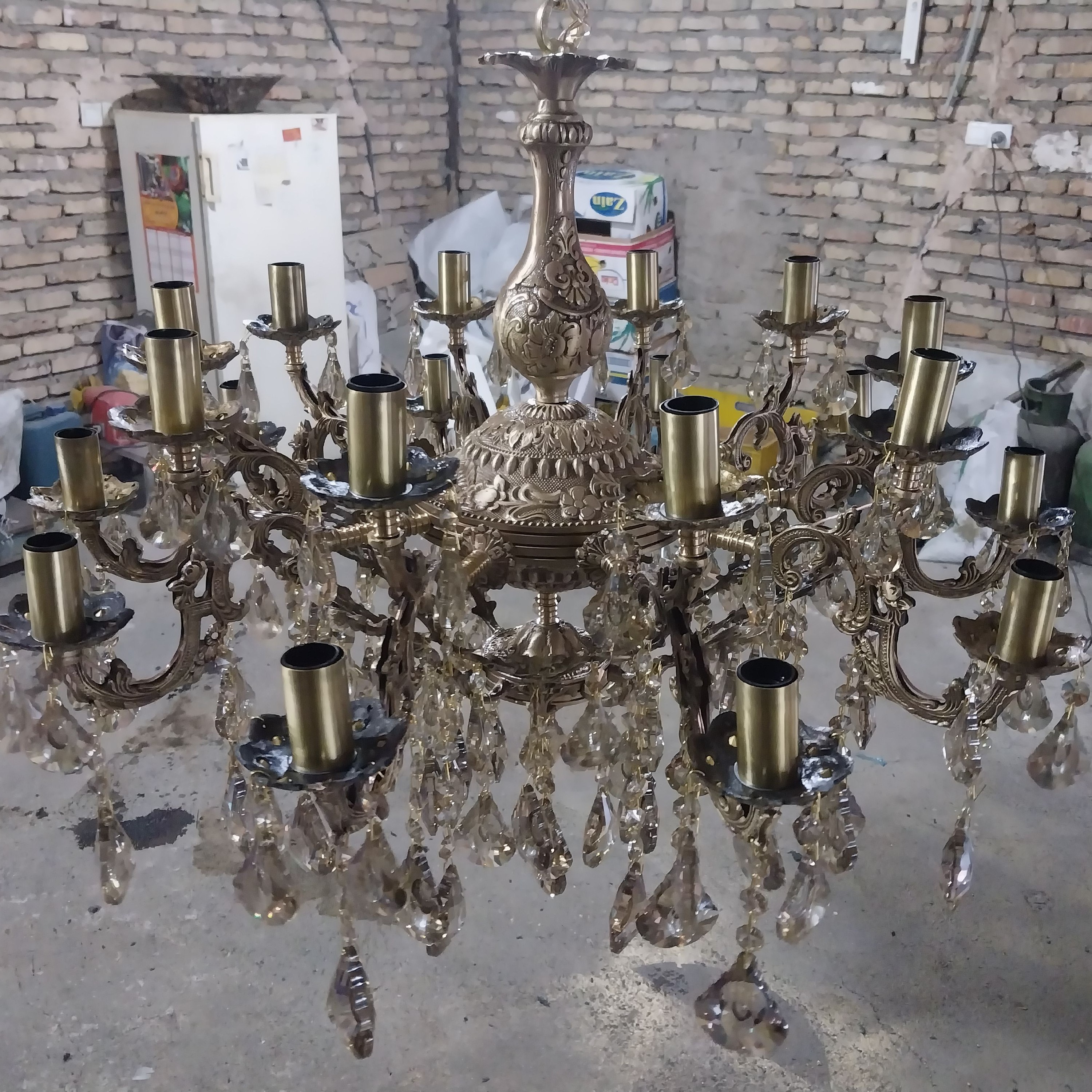 لوستر برنجی . برنز . 10 شاخه 20 شعله . فقط رنگ طلایی . دوطوقه . ارسال رایگان مبلمونسرا مدل 245344