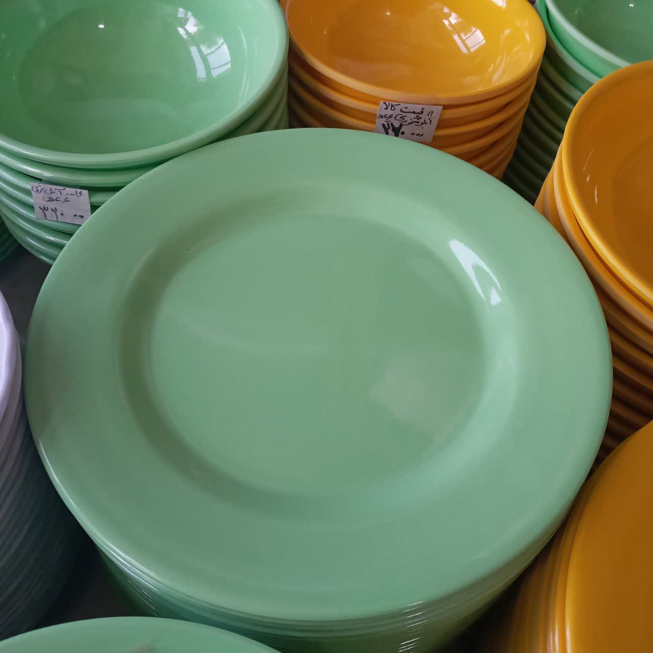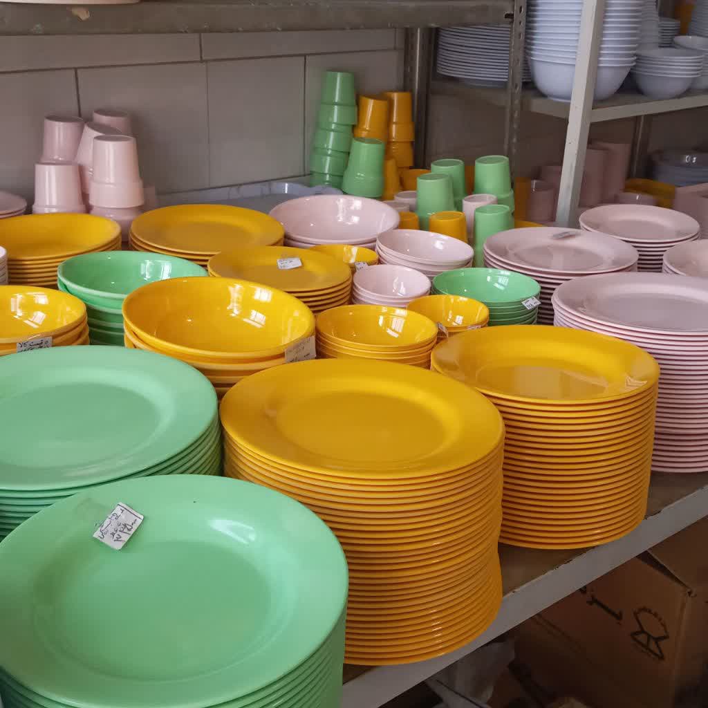 سرویس غذاخوری ملامین رنگی سبز 25 پارچه مارک مارک اصلی تولید کارخانه یزد دارای استاندارد مبلمونسرا مدل 288764
