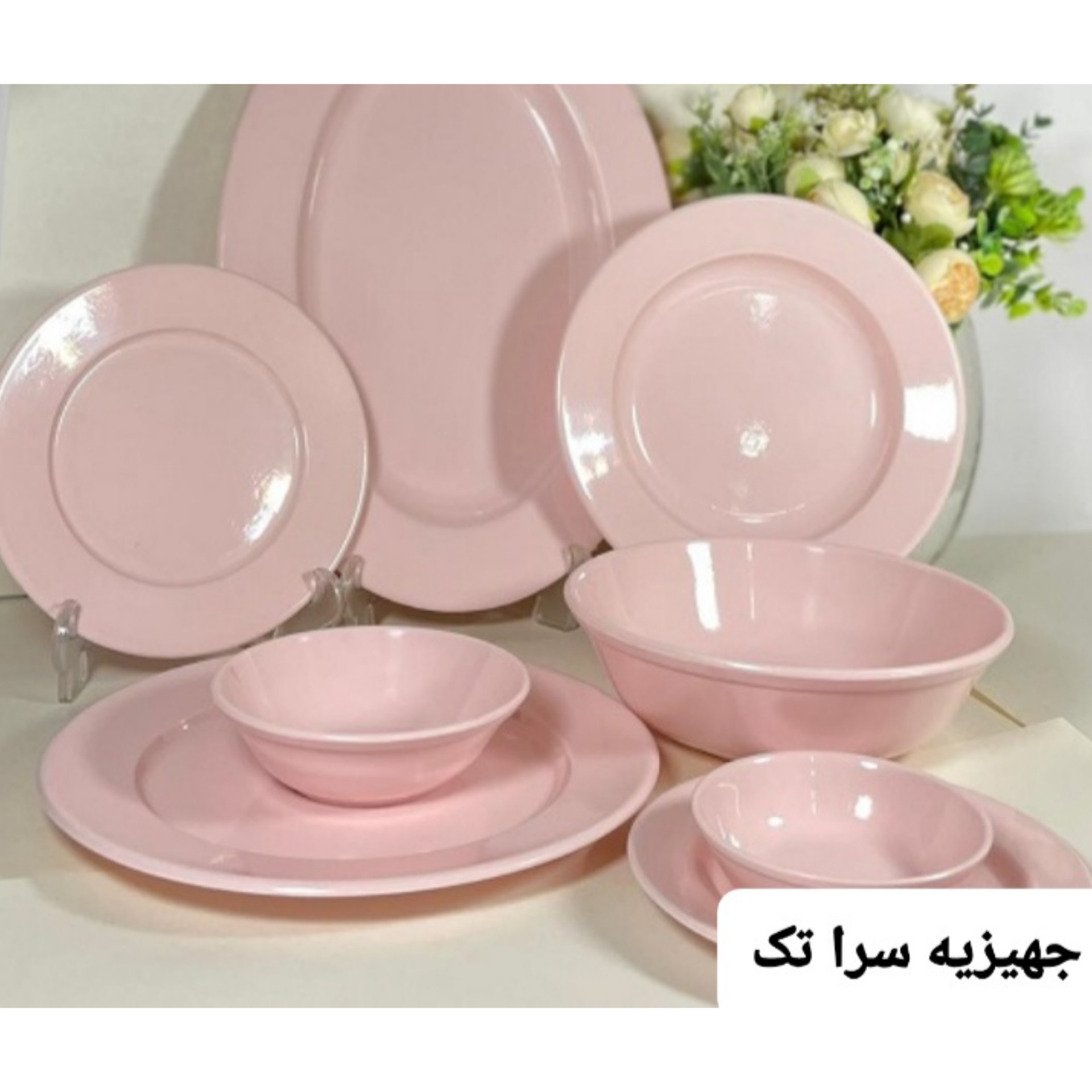 سرویس غذاخوری ملامین رنگی صورتی 25 پارچه مارک مارک اصلی تولید کارخانه یزد دارای استاندارد مبلمونسرا مدل 287912