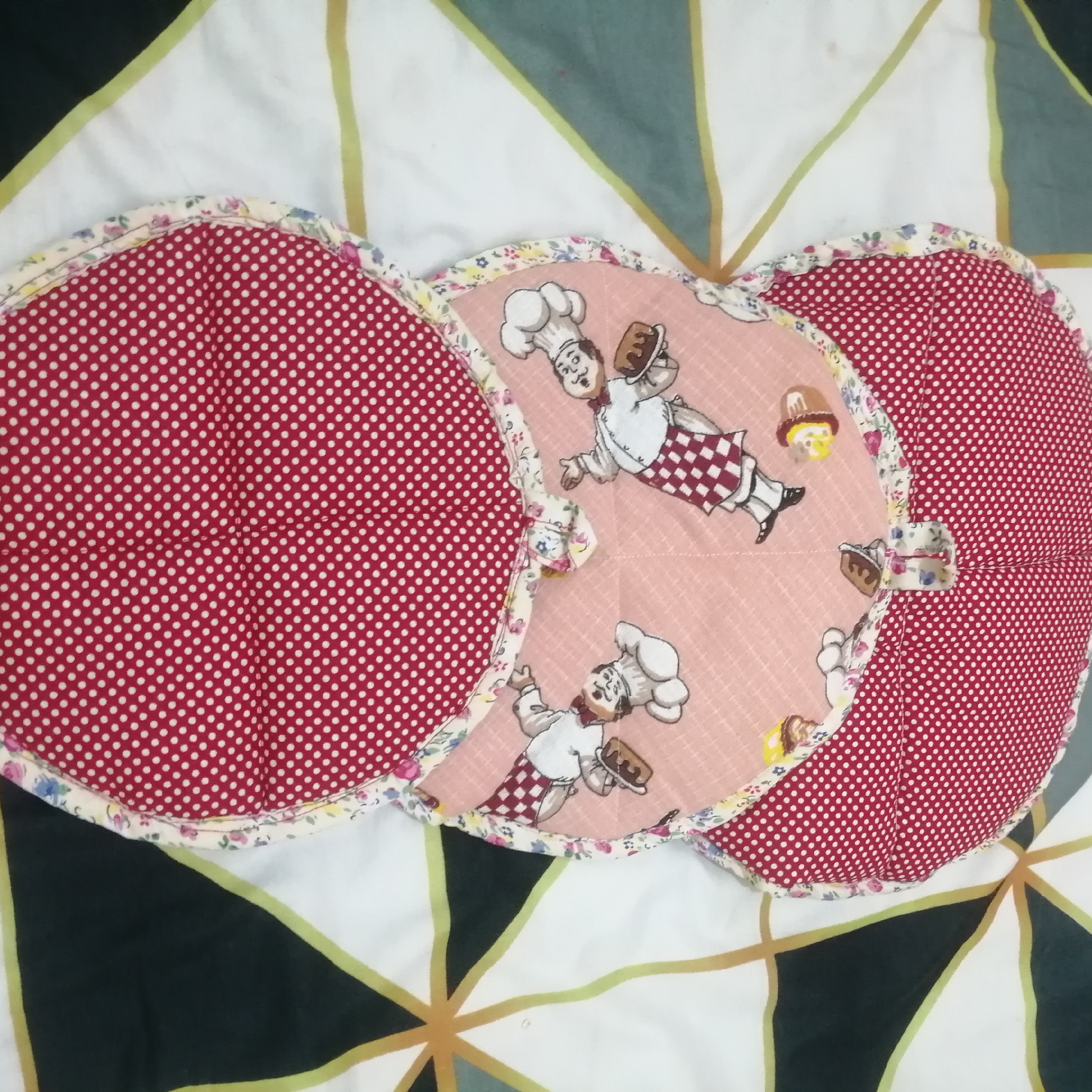 ست سه تایی دمکنی سایز استاندارد در رنگ وطرح های مختلف پارچه نسوز دولایه پارچه برای کف به همراه لایه میانی که قدرت جذب رو بالا میبرد