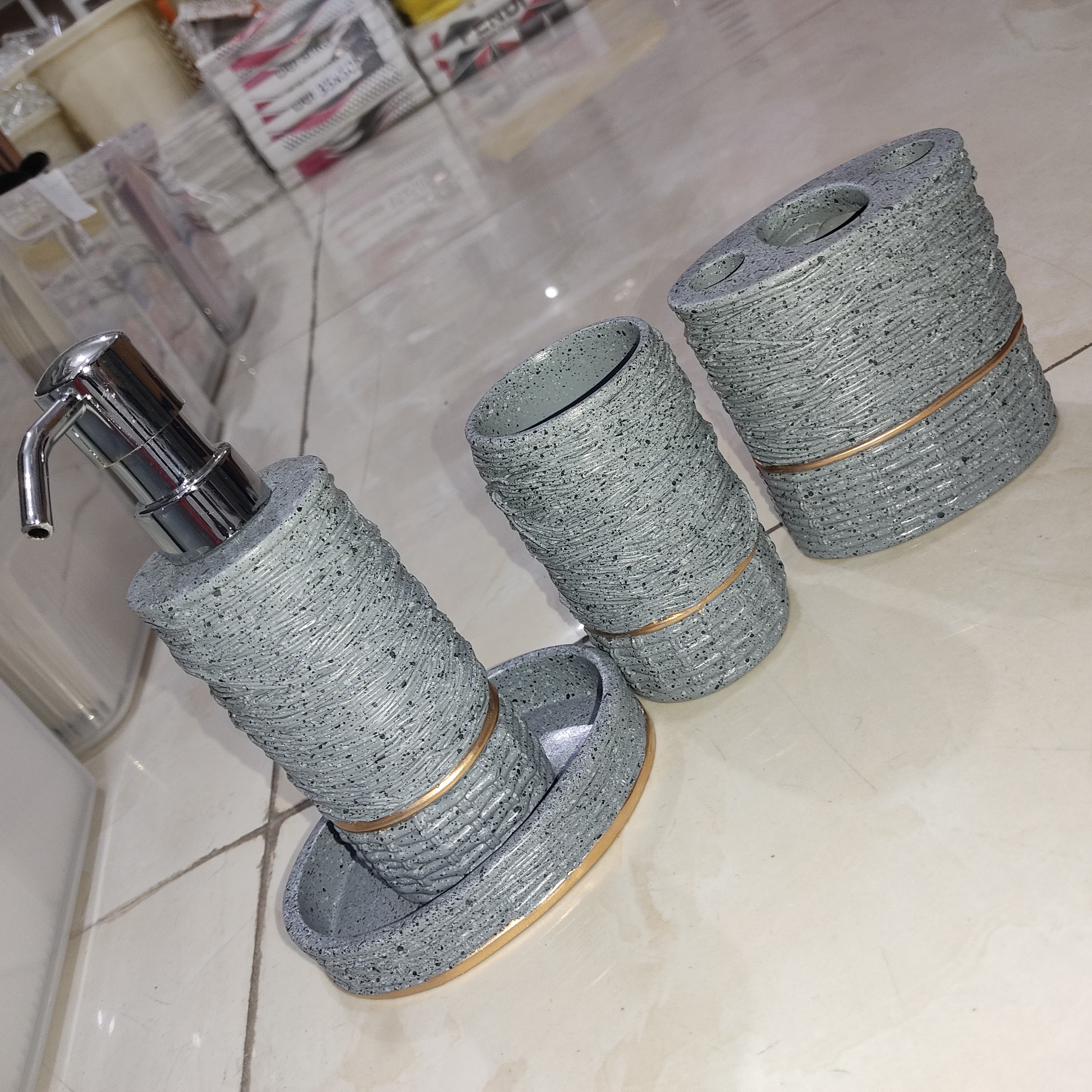 ست سرویس بهداشتی رزین ست شش پارچه قابل شستشو زیبا و شیک مناسب جهیزیه عروس طرح سنگ جنس:رزین