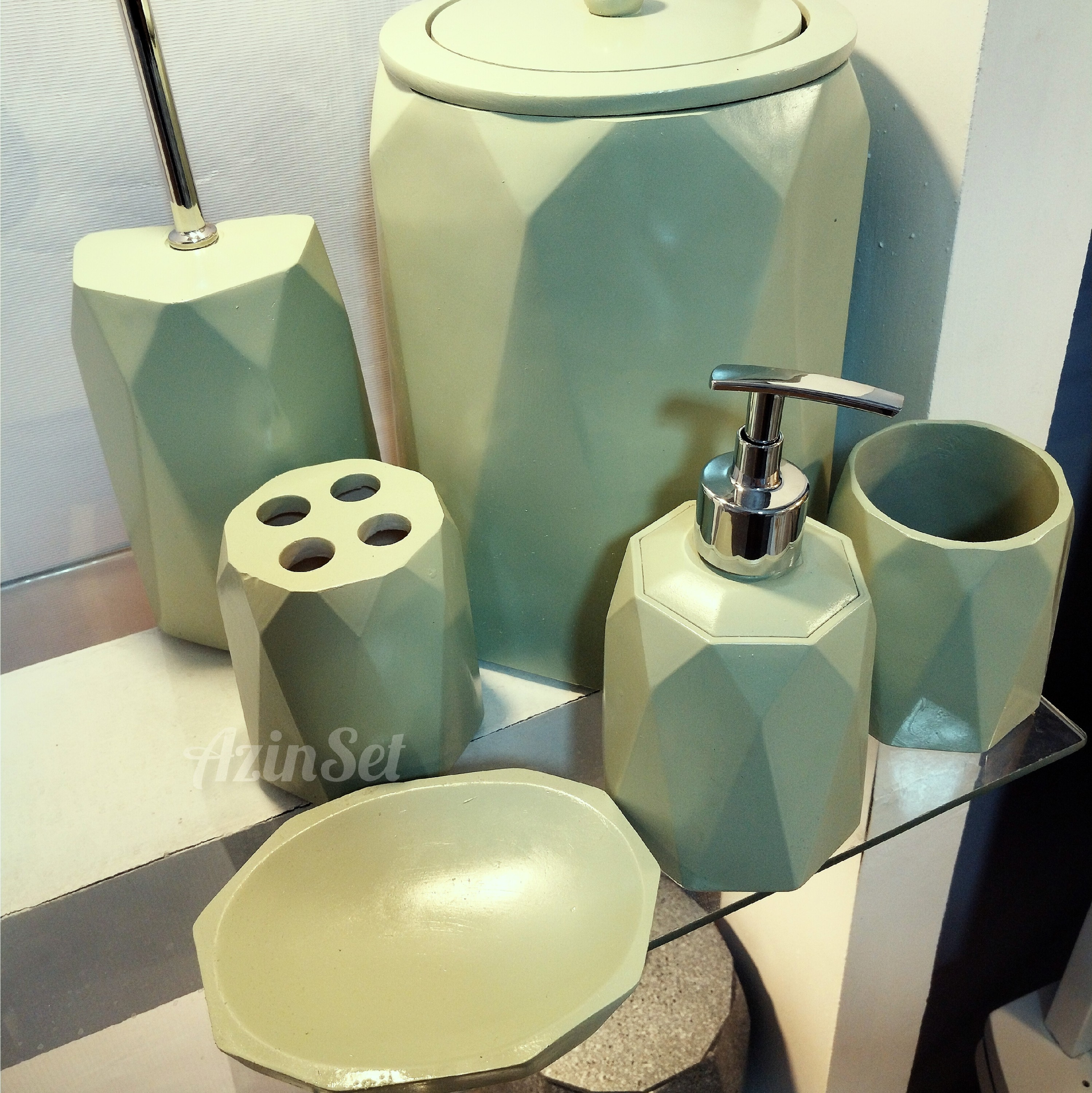 ست سرویس بهداشتی تاور رنگ سبز فوق خاص برند درجه یک آذین ست با گارانتی و ضمانت کامل مبلمونسرا مدل 265446
