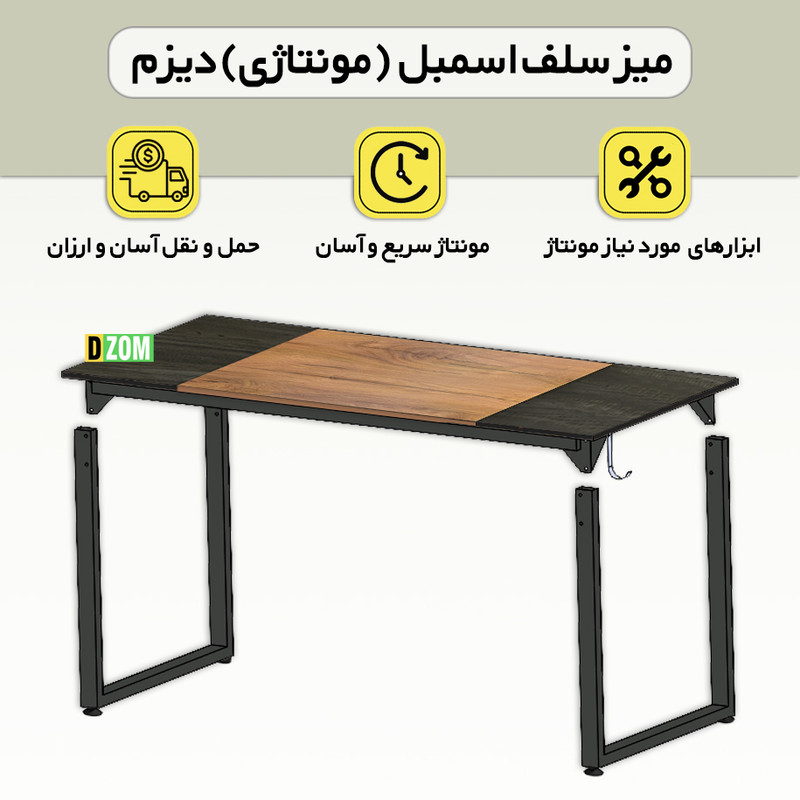 میز مدیریت DZom مدل مونتاژی TLD_asm_160×90_Tri_BALIGHT محصولی مونتاژی، سبک، شیک و در عین حال جذاب و کارآمد از سری تولیدات میباشد. این محصول بصورت سلف اسمبل (مونتاژی) تولید شده است. این میز حمل و نقل آسان و هزینه حمل مقرون به صرفه ای دارد. این میز از پایه های فلزی با مقطع 50x30 میلیمتر و رنگ رویه الکترو با ی و دوام بالا ساخته شده است. همچنین پایه های پیچی، قابلیت تنظیم نسبت به سطح زمین را دارد تا بهترین تراز جهت جلوگیری از تکان خوردن را ایجاد نماید. صفحه میز از جنس MDF درجه یک برجسته طرح چوب با ترکیبی از دو رنگ مشکی و قهوهای روشن می باشد. این محصول با طول 160cm، عرض 90cm و ارتفاع 75cm عرضه می شود. به این نکته توجه شود که تنوع رنگ انتخابی کالا تنها مربوط به رنگ پایه های فلزی میباشد.