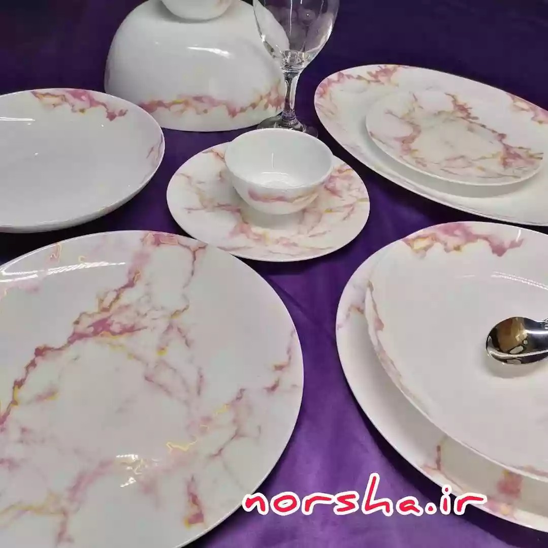 سرویس آرکوپال طرح ماربل صورتی مبلمونسرا مدل 291576