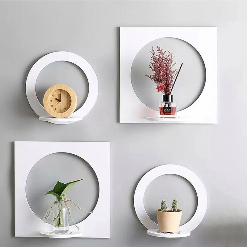 شلف دیواری خونه خاص مدل دایره مربع مجموعه 4 عددی مبلمونسرا مدل 209232