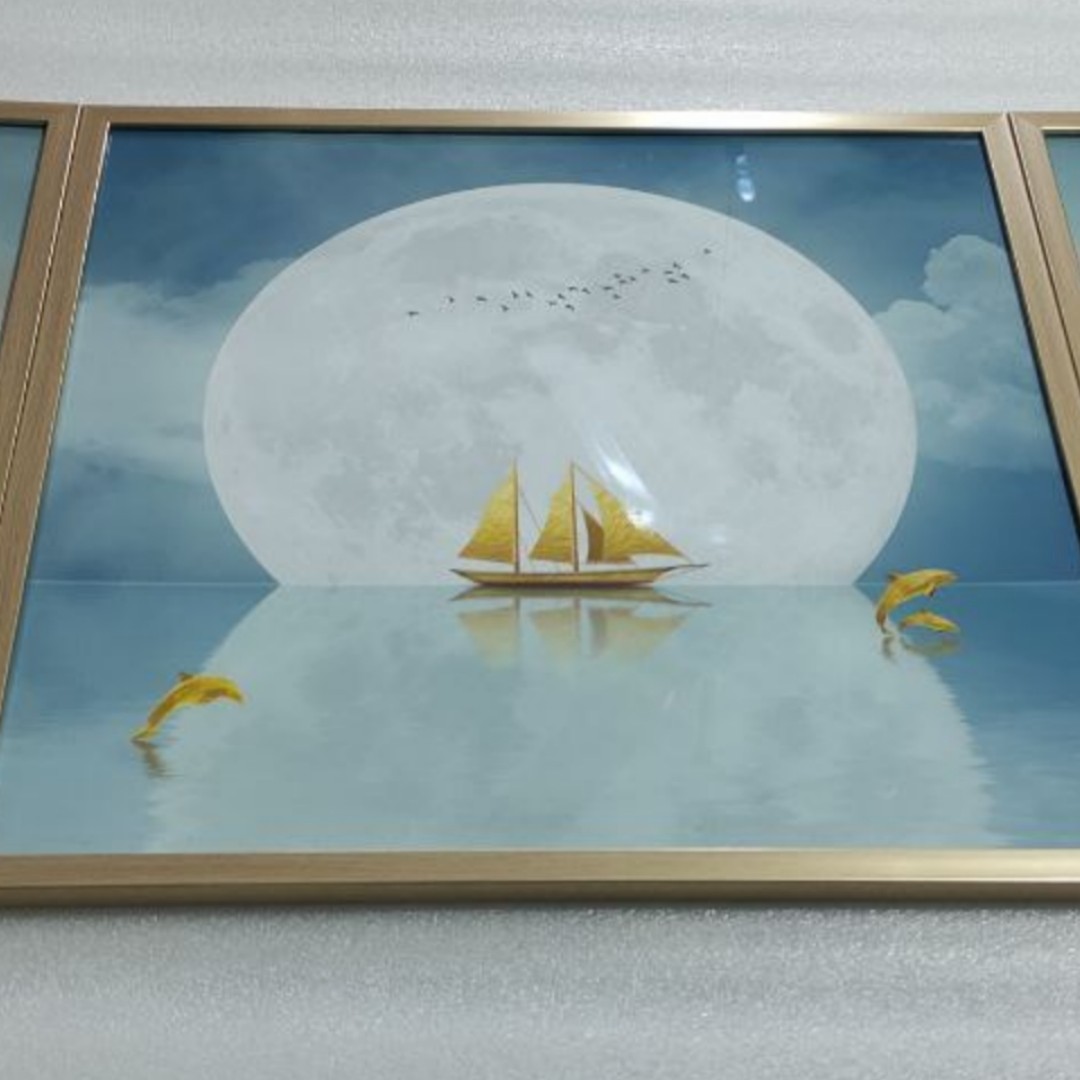 تابلو دکوراتیو ماه،قایق بادبانی ودلفین ها سه تکه مبلمونسرا مدل 267299