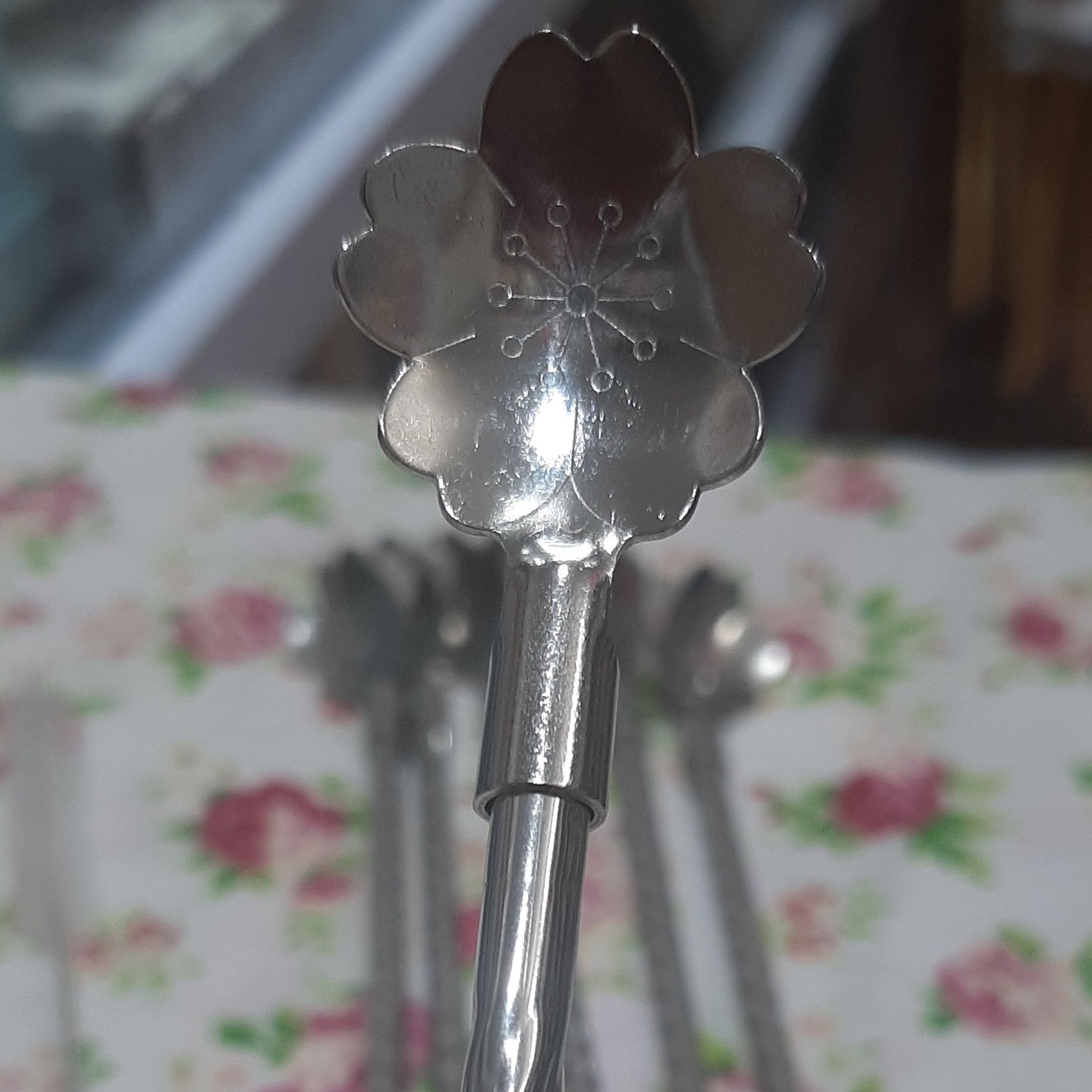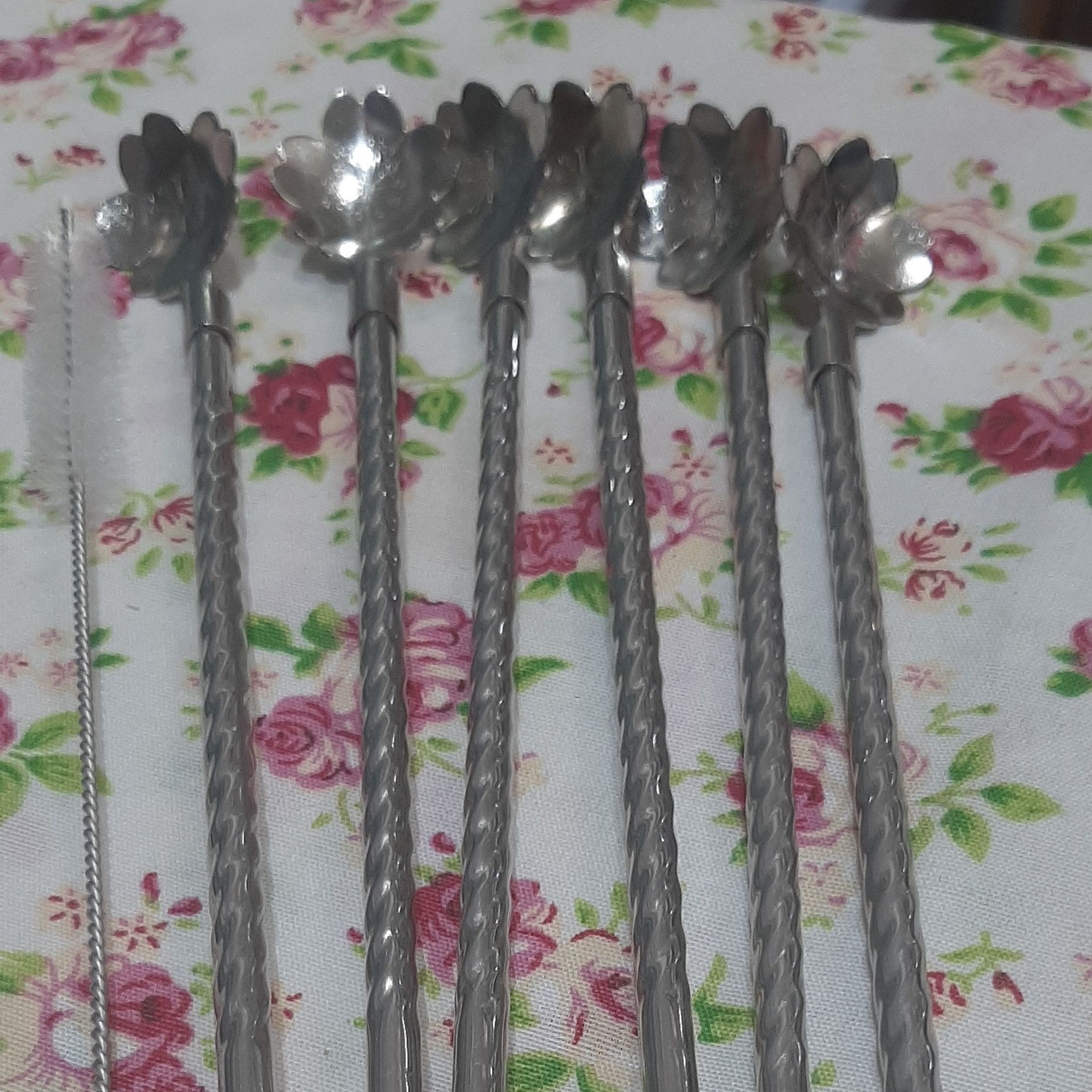 قاشق شربت خوری نی دار طرح گل. پک ۶ تایی همراه فرچه شستشو. محصول کشور چین