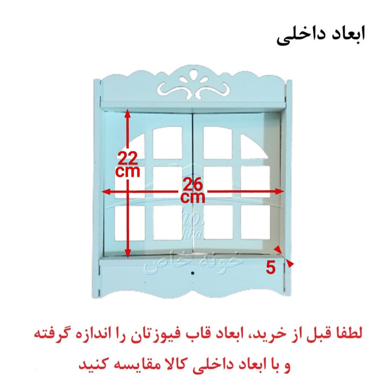 قابهای فیوز برق در خانه ها معمولا چهره زیبایی ندارد و قرار دادن شلف دیواری با طرح زیبا روی قاب فیوز می تواند جلوه زیبایی به خانه یا محل کار بدهد. همچنین می توان با نصب قلاب از آن به عنوان جاکلیدی هم استفاده کرد. شلف دیواری خونه خاص طرح پنجره از ورق pvc با کیفیت عالی ساخته شده و کاملا قابل شستشو می باشد برای انتخاب شلف مناسب قاب فیوز منزل یا محل کارتان ابعاد دور قاب آن را گرفته و با ابعاد داخلی شلف مطابقت دهید. رنگ سفید این محصول جنس پی وی سی و قابل شستشو است و سایر رنگها (نسکافه ای، قهوه ای و ...) از جنس mdf بوده، قابل شستشو نمی باشد ولی با توجه به رنگ دکور شما می تواند زیبا و در خور توجه باشد. محصول اصلی با ابعاد اصلی و کیفیت عالی فقط با برند و بسته بندی خونه خاص ال می شود.