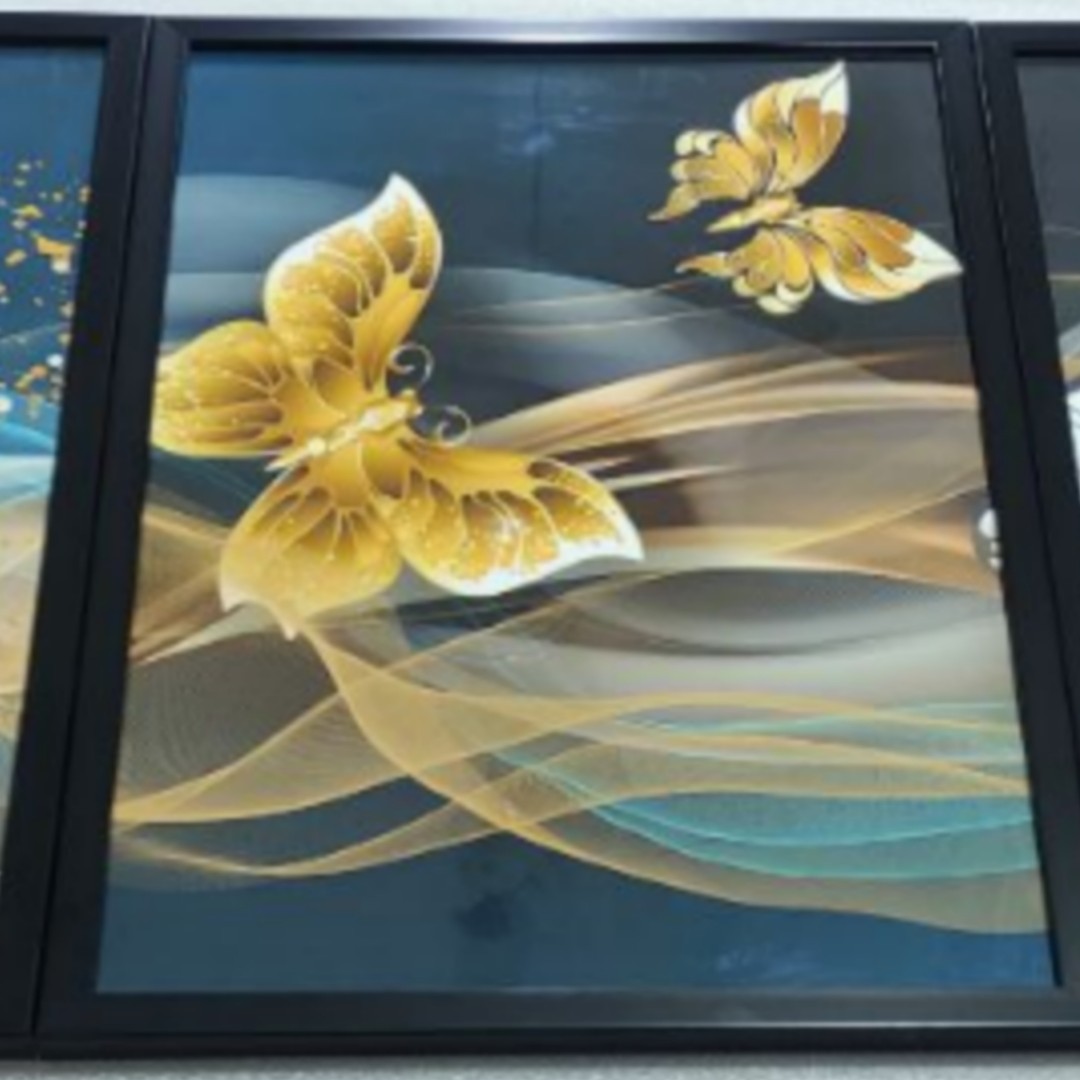 تابلو دکوراتیو فانتزی پروانه های سفید وطلایی سه تکه مبلمونسرا مدل 267824