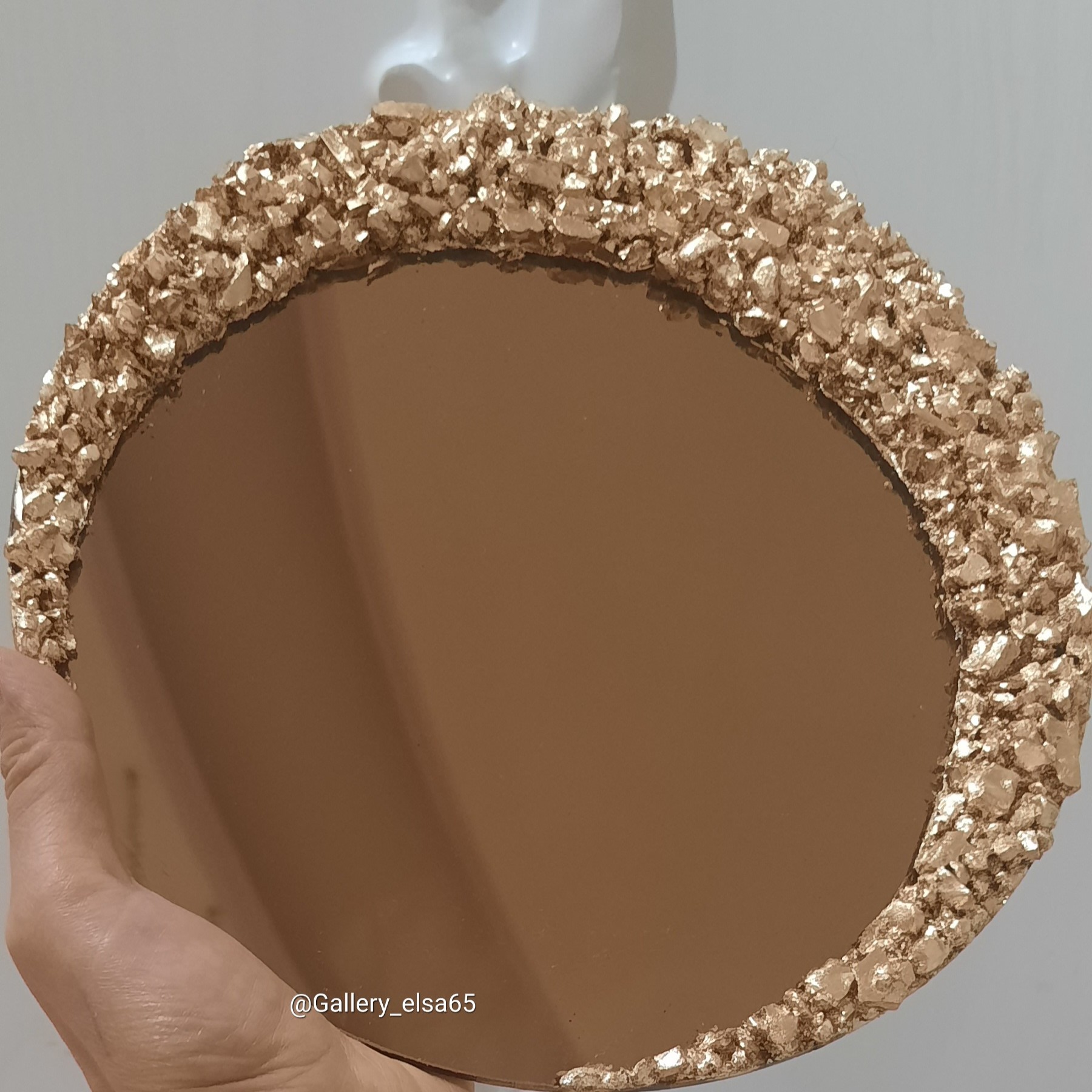 آینه رزینی رنگ آینه سفید 4میل قطرآینه 30سانت دیزاین شده با رزین و سنگ کریستال ورق طلا و نقره کاملا کاره دست