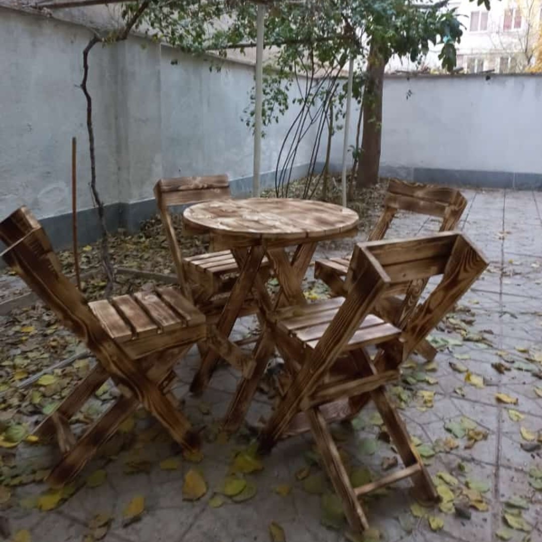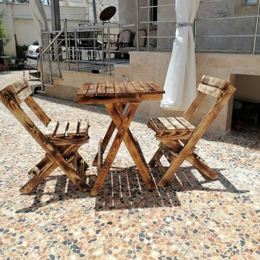 میز صندلی چوبی تاشو میز 60*90 صندلی پایه 7 سانتی تحمل وزن 240 کیلو سوخته نگاری شده ارسال از طریق پایانه و باربری توسط مشتری پرداخت میشود